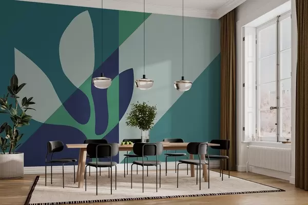 abstract graphic plant on the background of geometry in blue tones - Wall mural (No. w04028v1)
