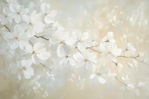 delicate blooming apricot branch in the style of oil painting in pastel colors - Wall mural (No. w04029)