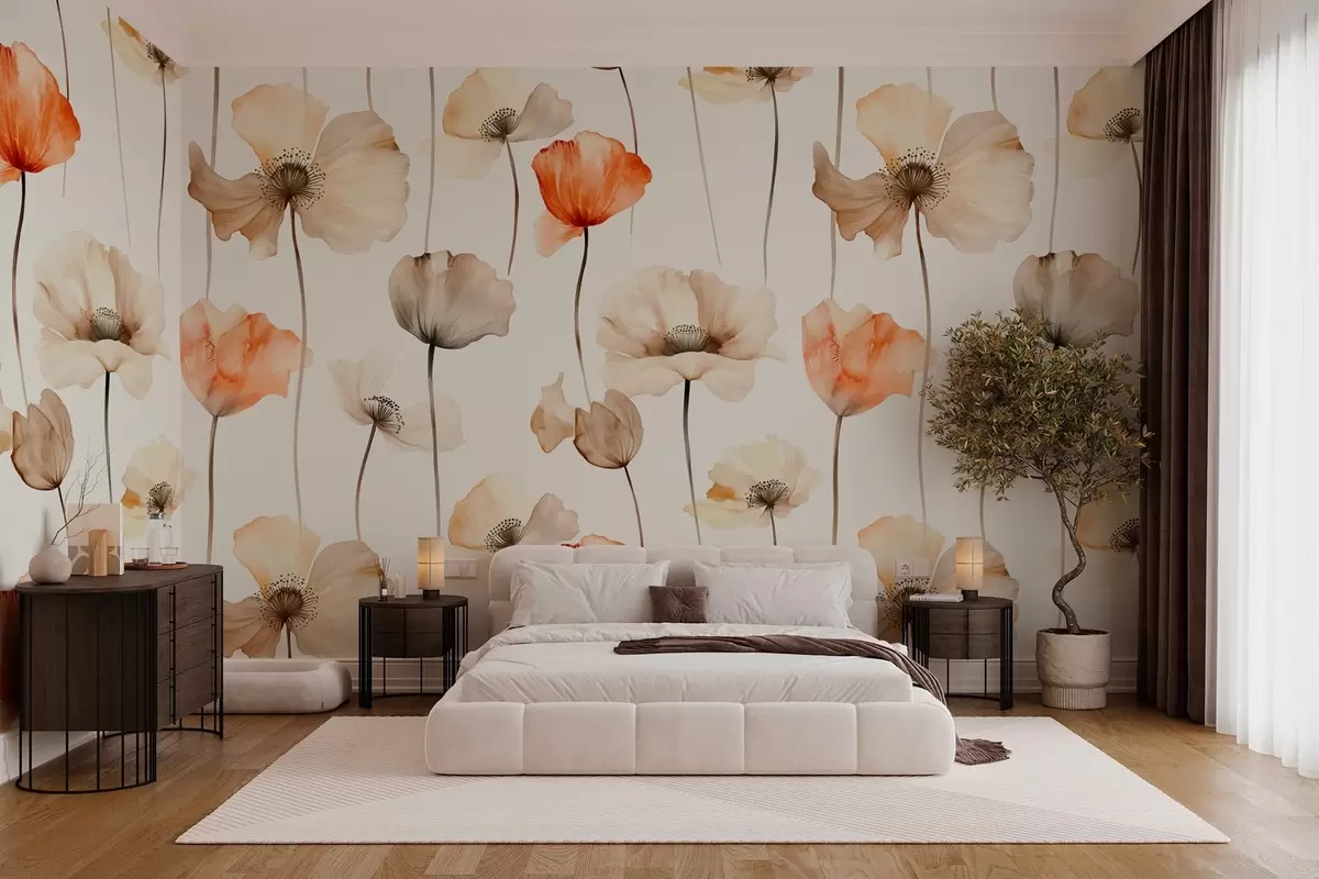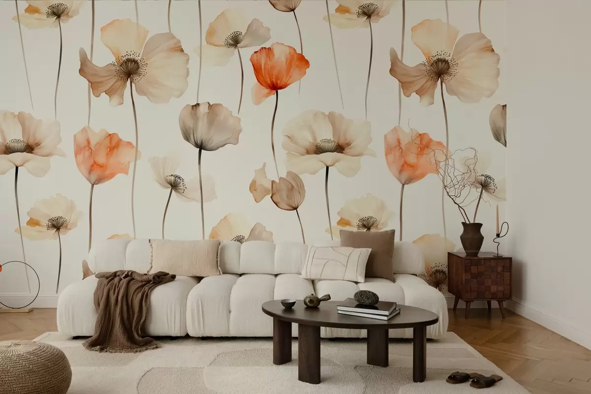 curly poppies in watercolor style - Wall mural (No. w04031)