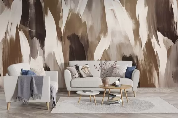 bstract texture of warm earthy tones — cream, caramel, and coffee — blended into flowing brushstrokes full of depth and softness - Wall mural (No. w04035v2)