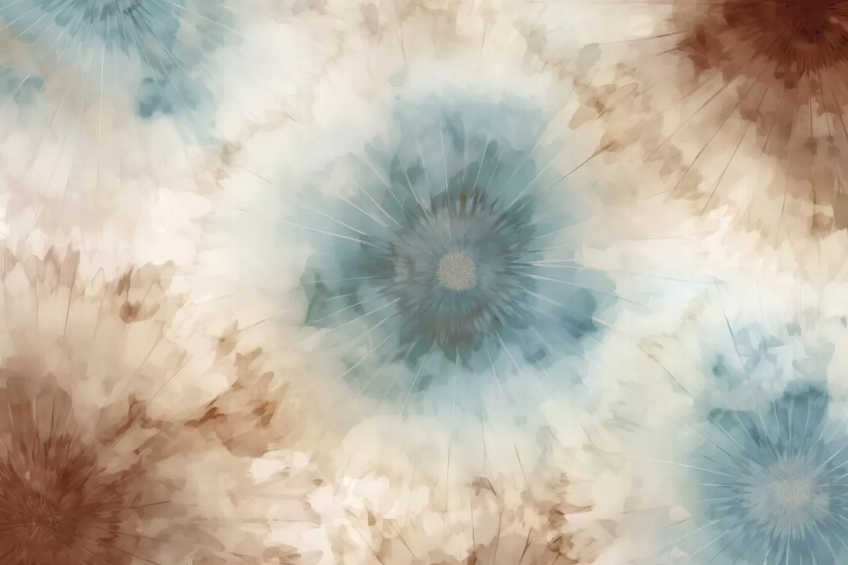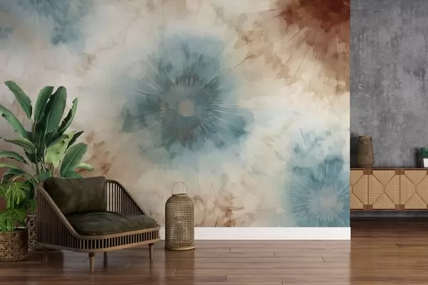 Radiating bursts in sky blue, clay, and ochre tones create a gentle interplay of grounded energy and airy expansion, evoking the pulse of nature - Wall mural (No. w04036)
