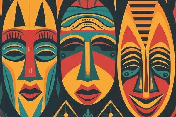 African masks - Wall mural (No. w04043v1)