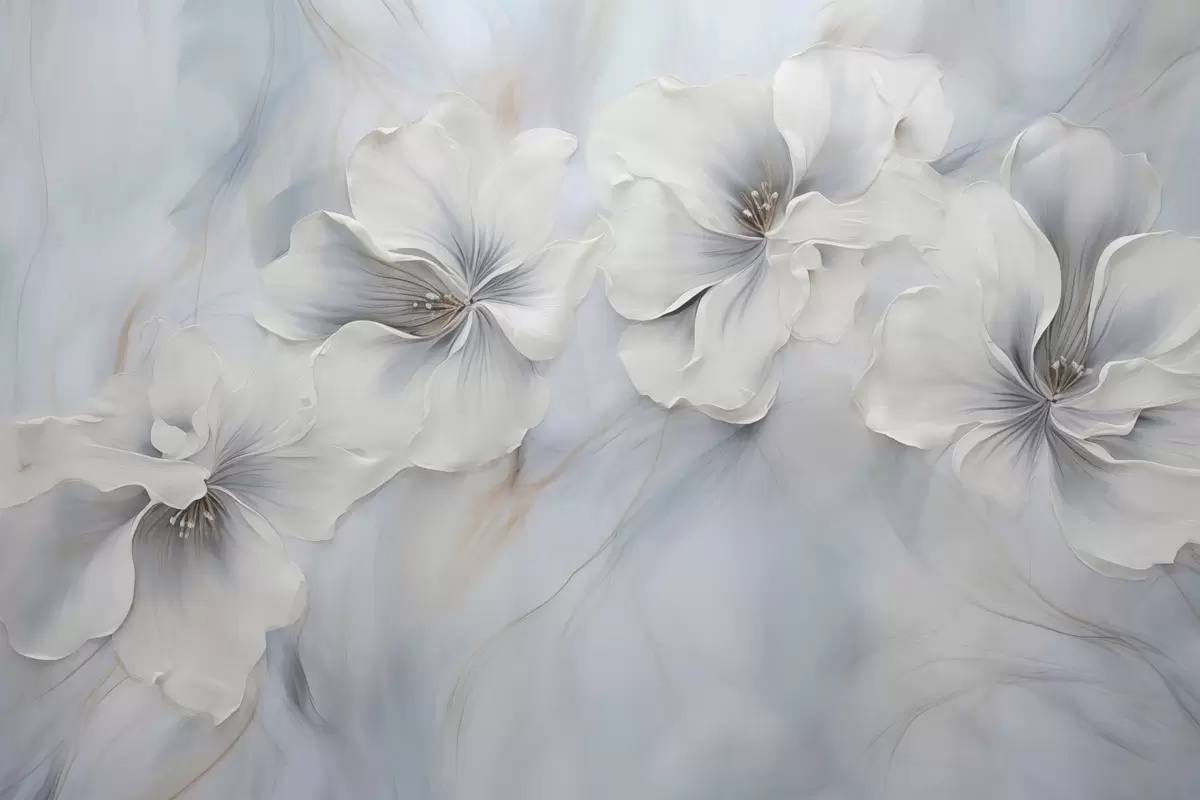 Oil painting flowers on blue background - Wall mural (No. w04047)