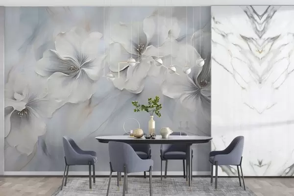Oil painting flowers on blue background - Wall mural (No. w04047)