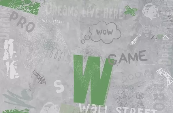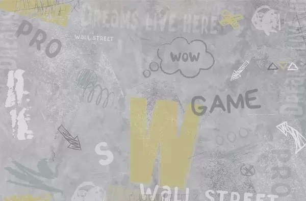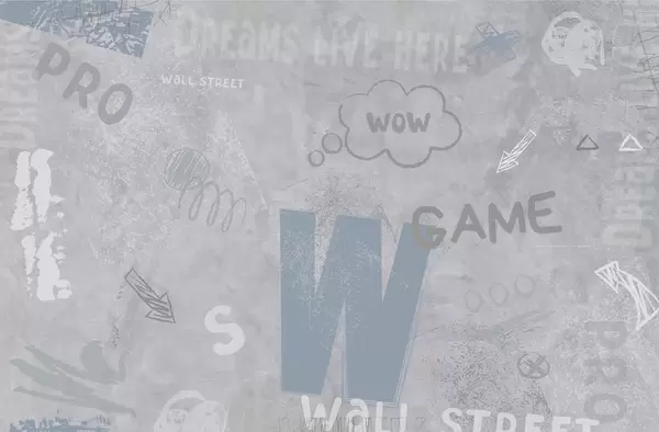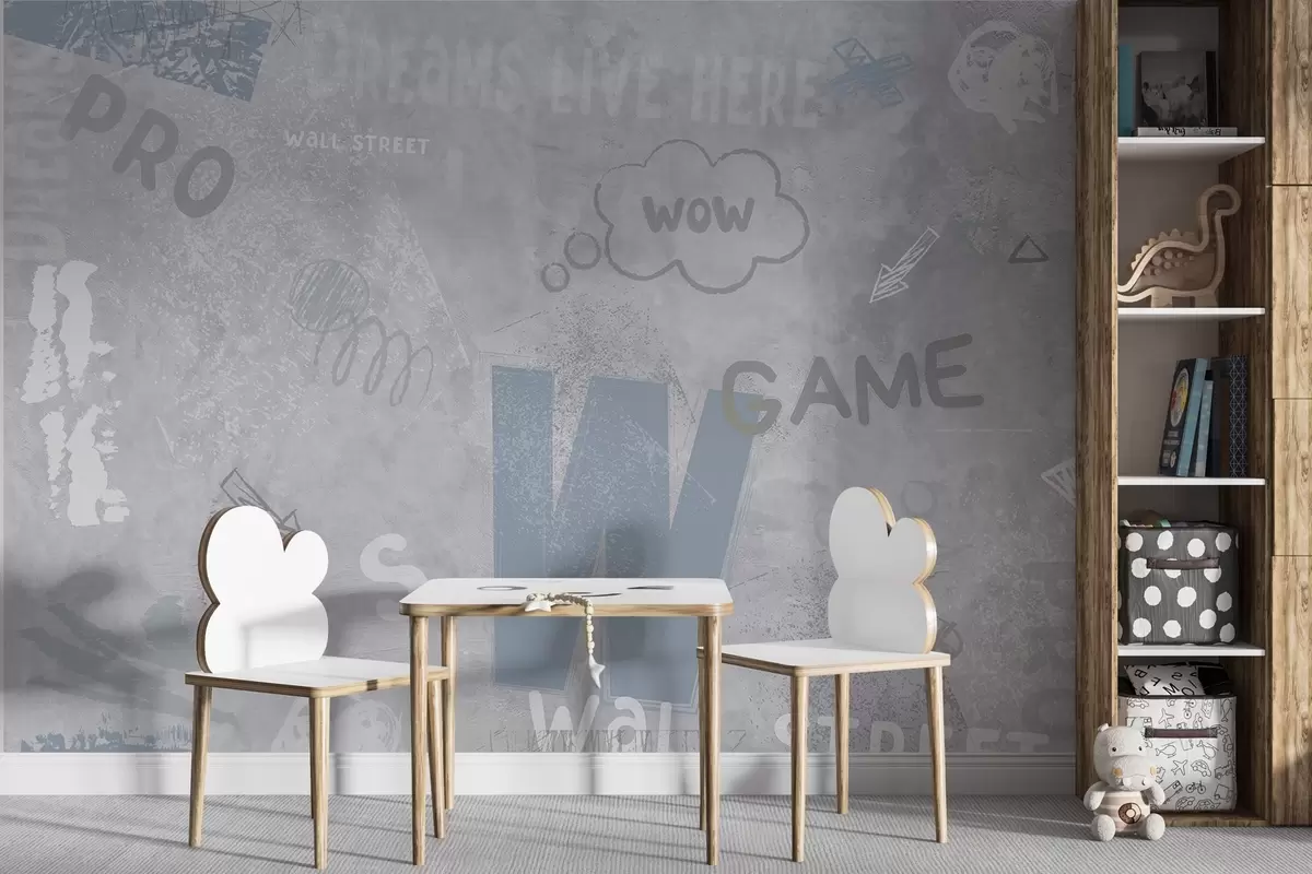 Design in street art style with blue color inscriptions on the background of concrete wall - Wall mural (No. w04056v1)