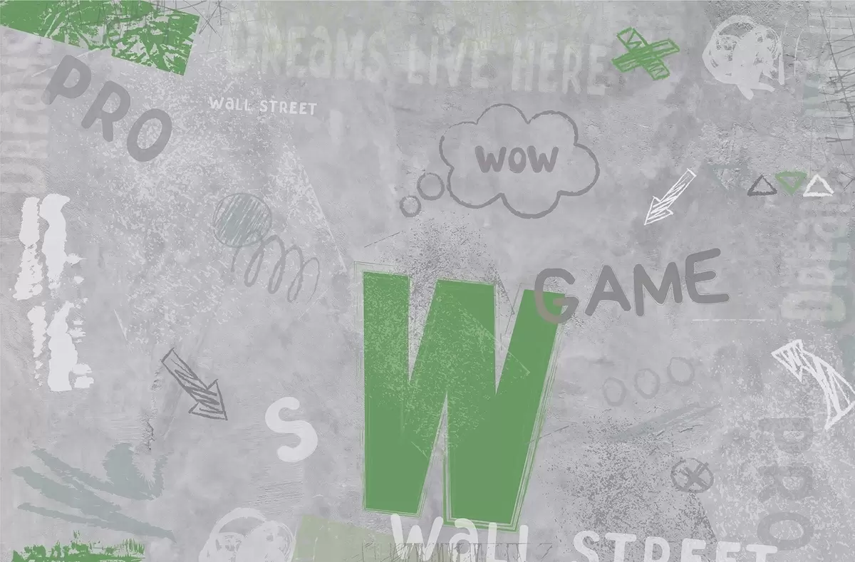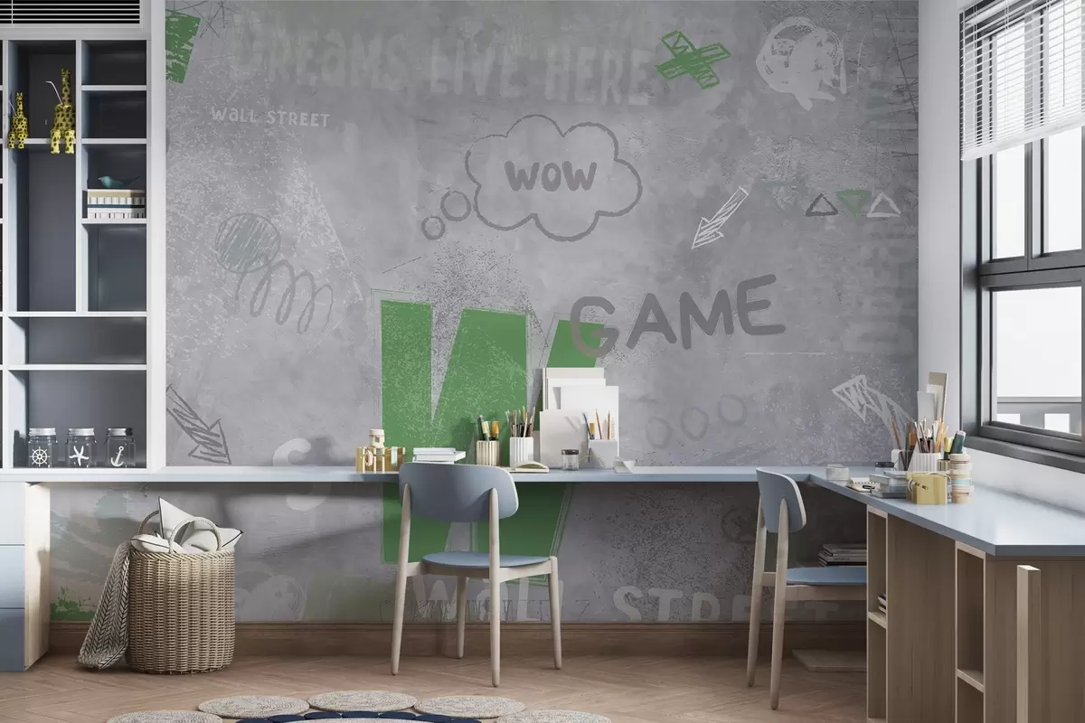 Street art design with green color lettering on the background of concrete wall - Wall mural (No. w04056v2)