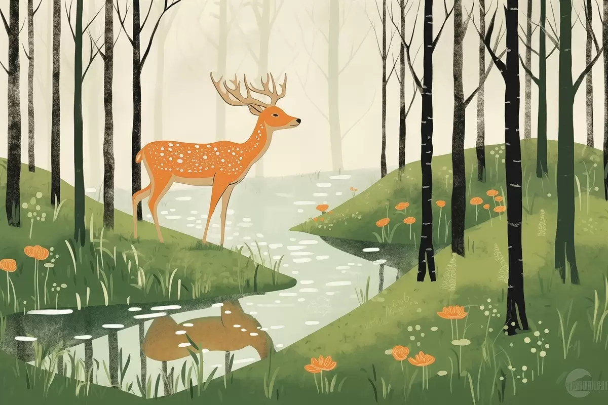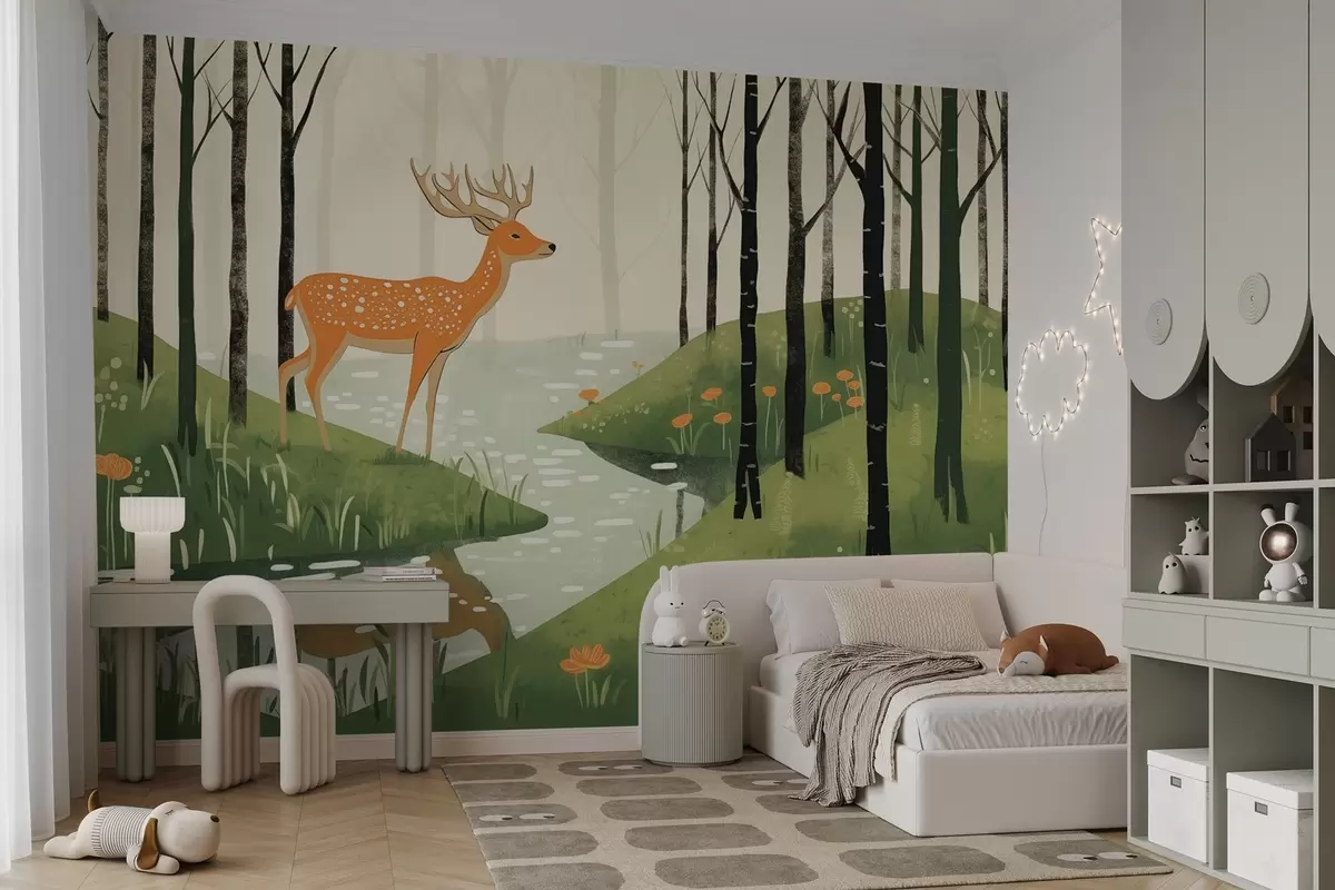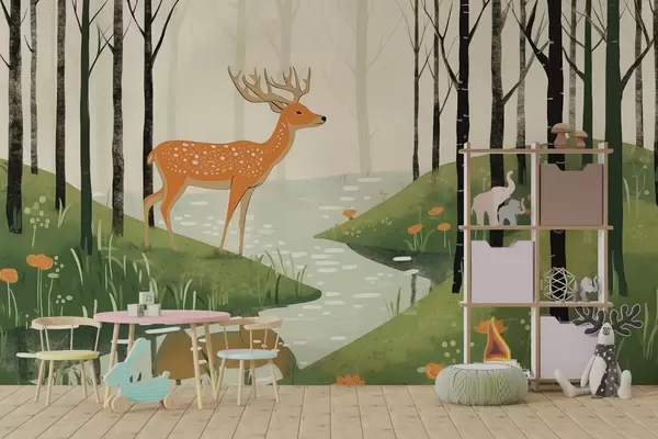 Fairy forest with olemens and stream - Wall mural (No. w04059)