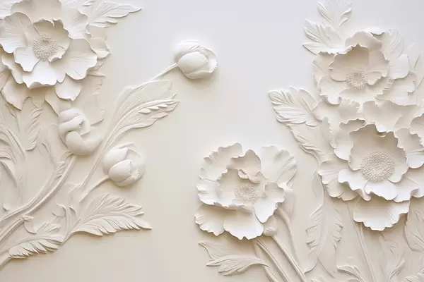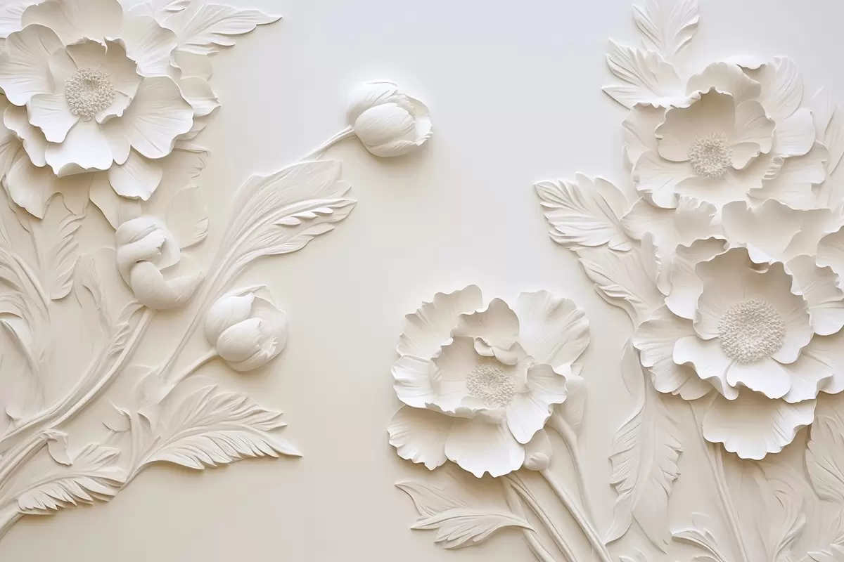 Bas-relief style flowers in pastel colors - Wall mural (No. w04060)
