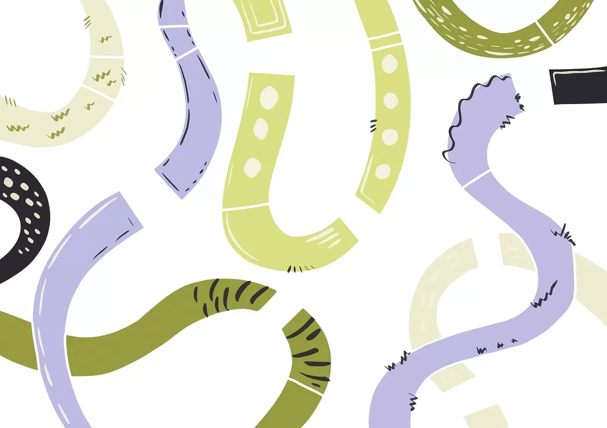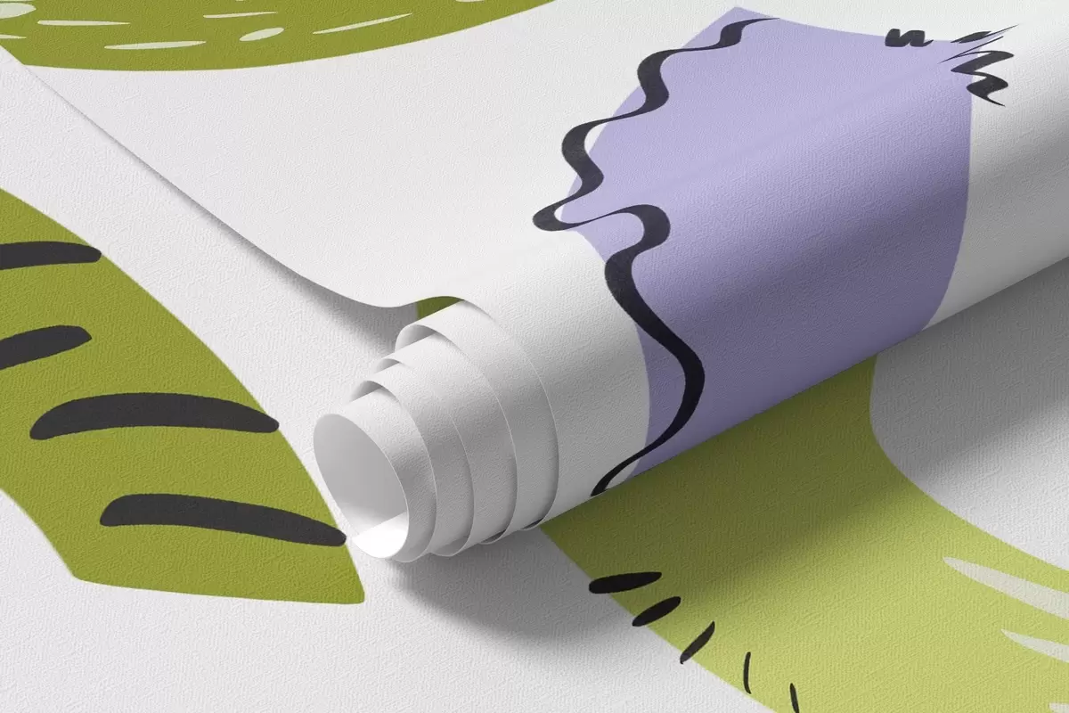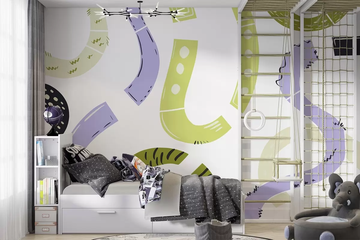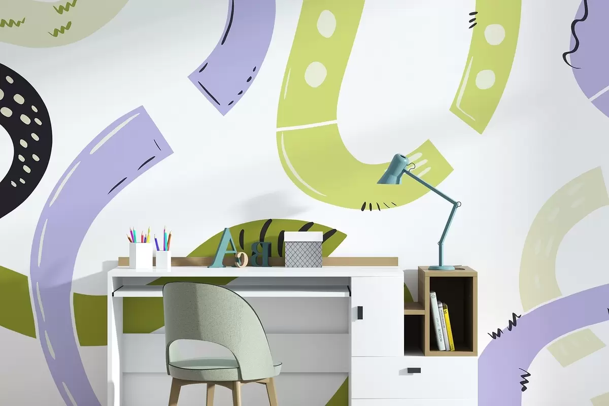 Abstract drawings, juvenile, doodles, green, purple - Wall mural (No. w04066v1)