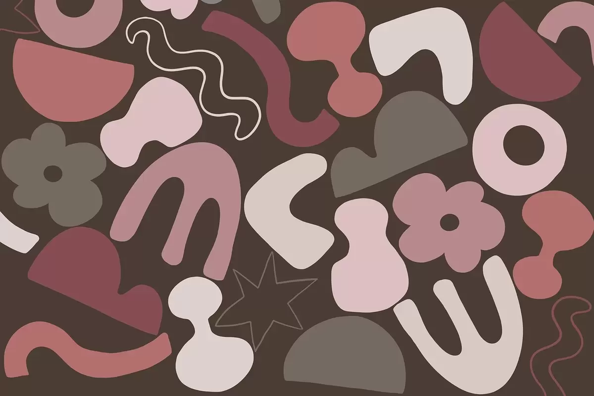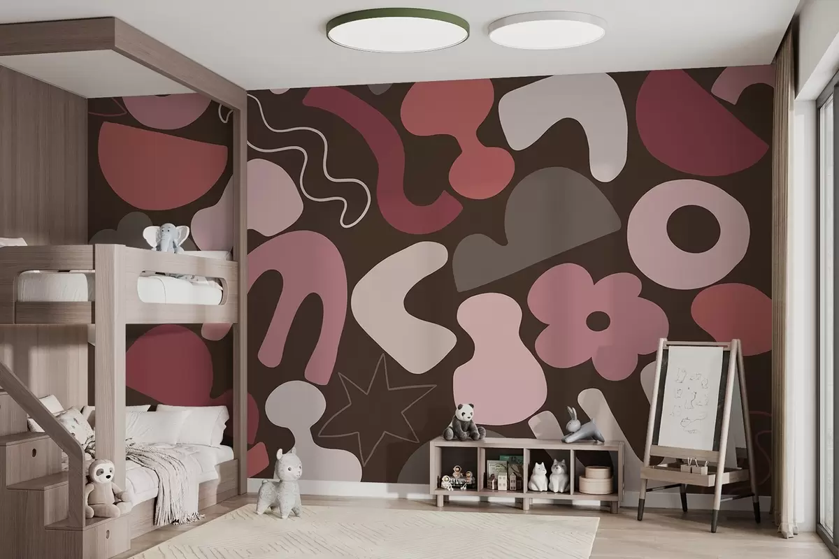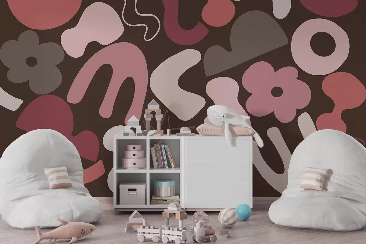 Geometric figures, juvenile, abstraction, dark burgundy background - Wall mural (No. w04067)