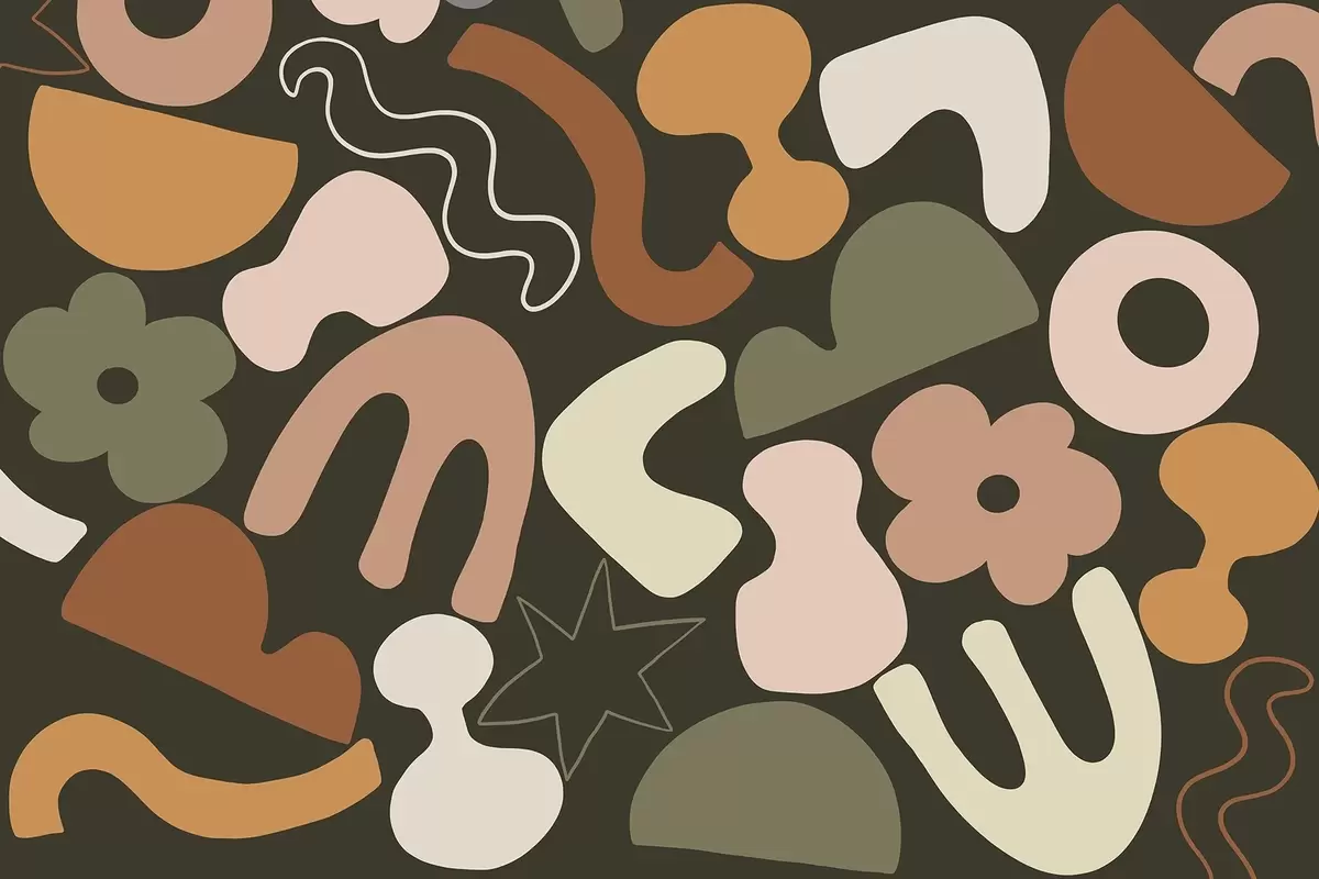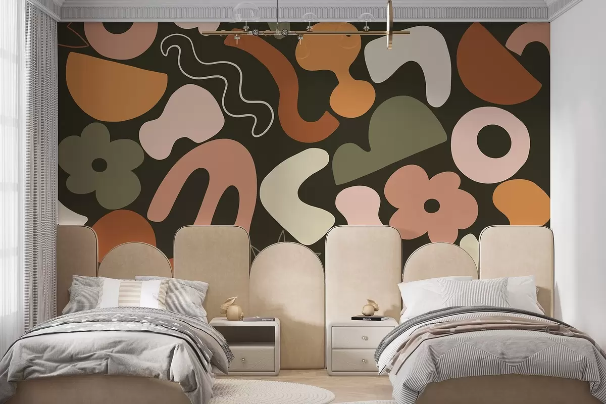 Geometric figures, juvenile, abstraction, dark green background - Wall mural (No. w04067v2)