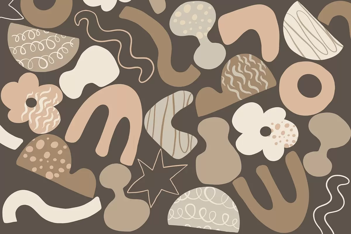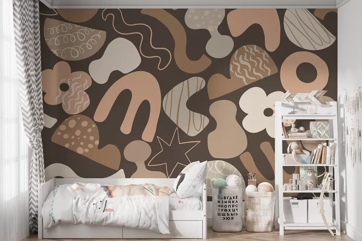 Geometric figures with doodles drawing, juvenile, dark beige background - Wall mural (No. w04068v1)
