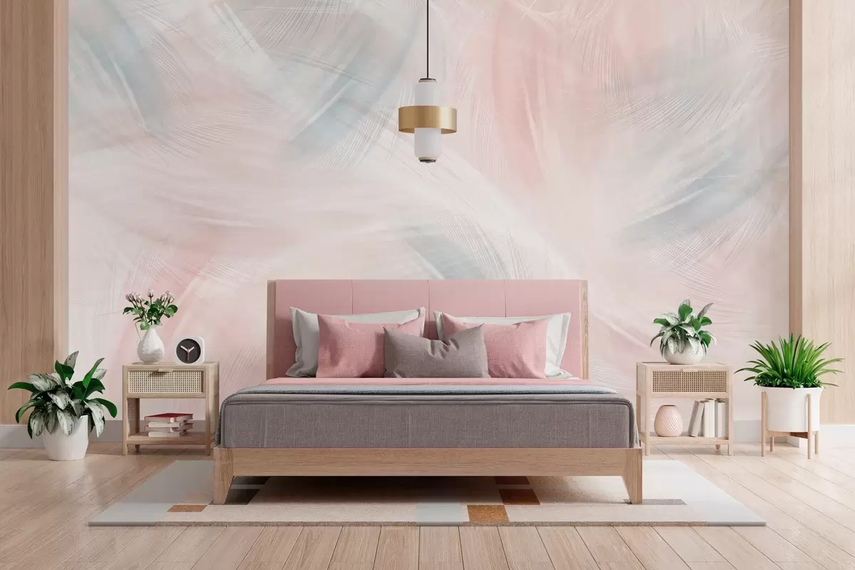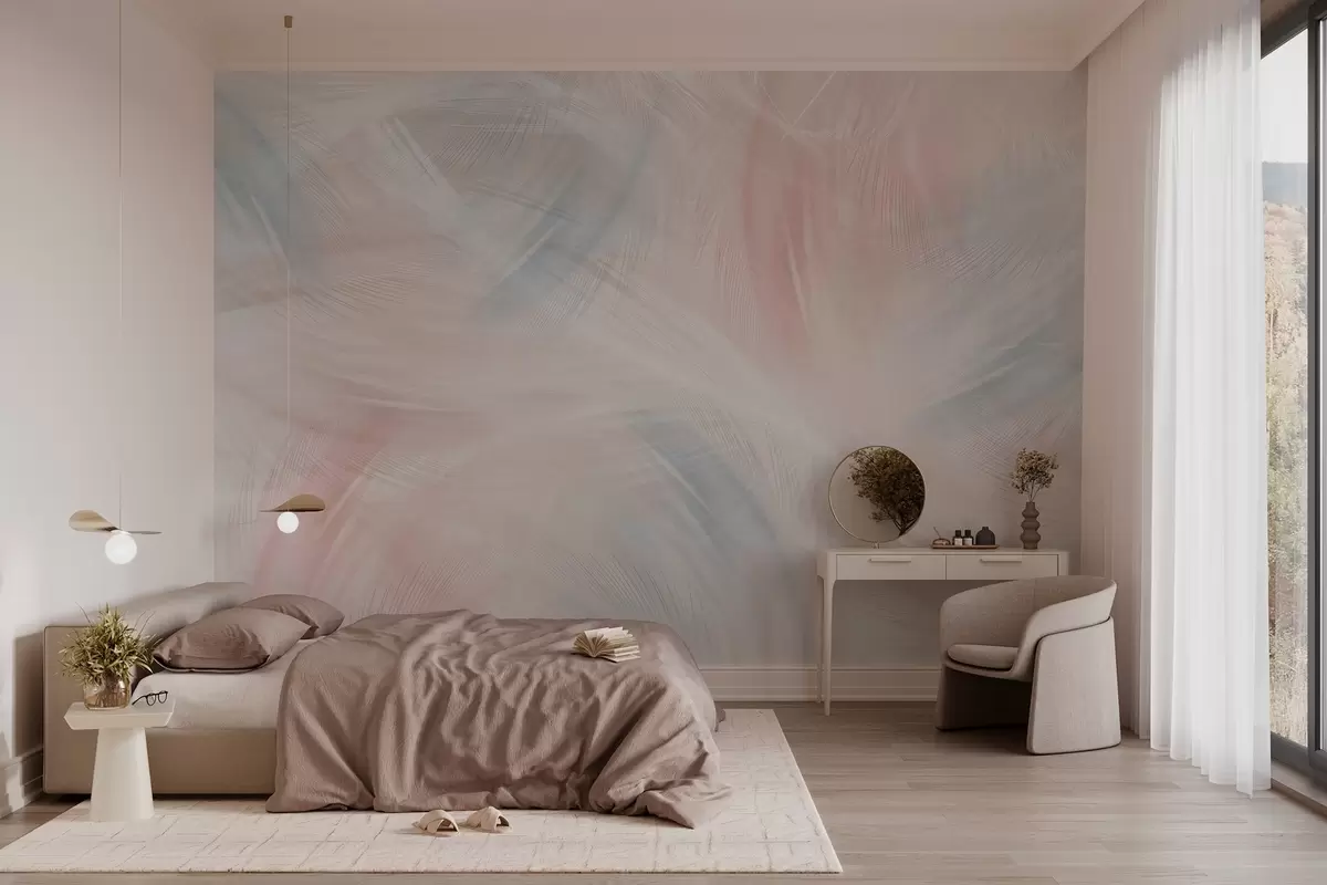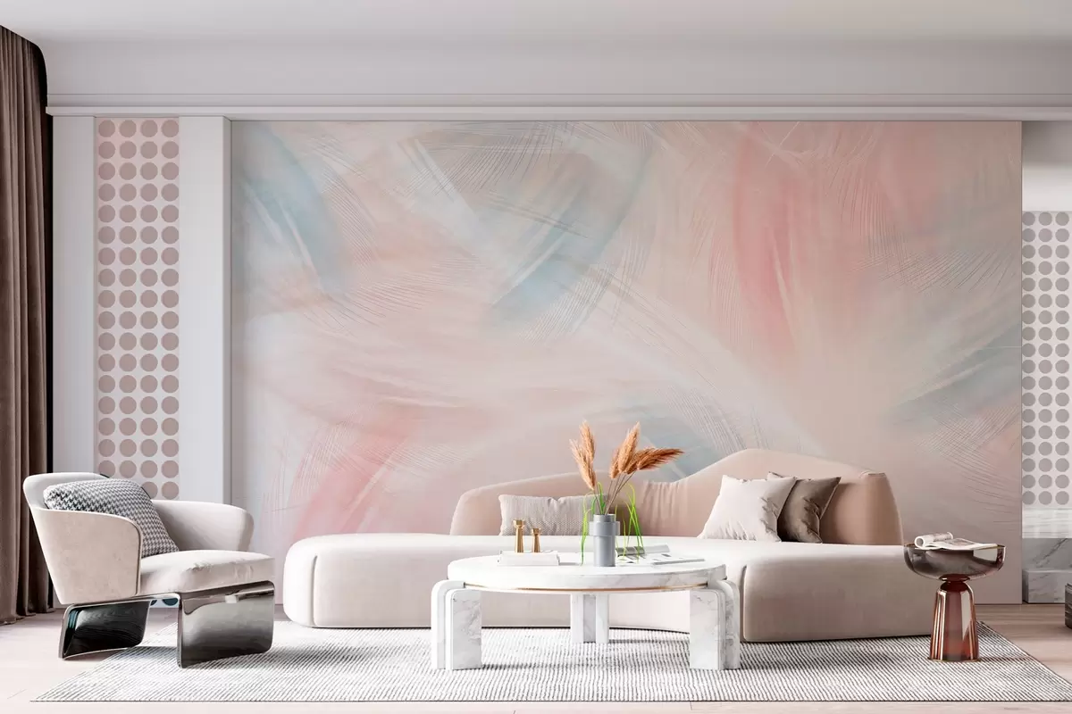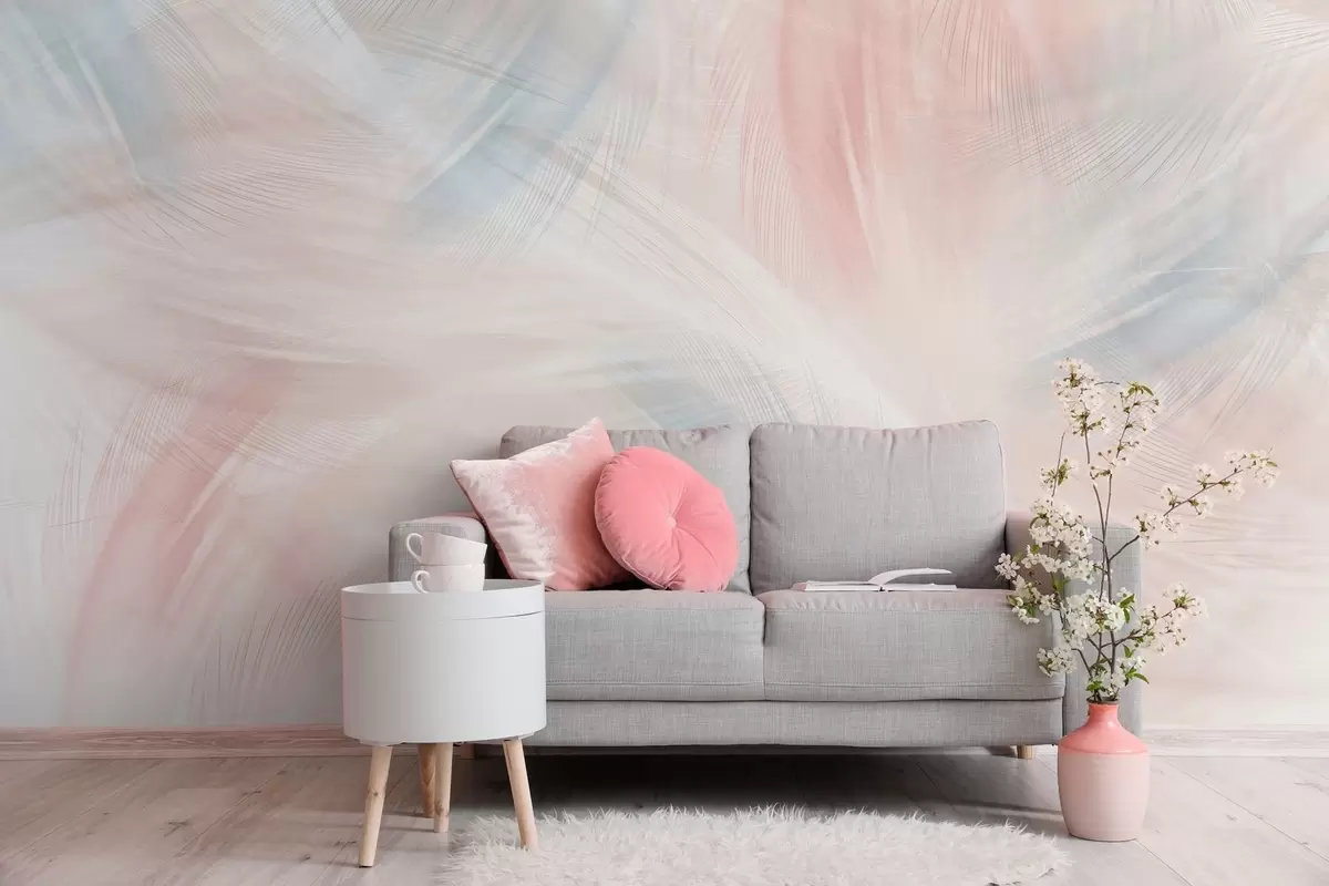 airy feathers in shades of pink and blue - Wall mural (No. w04071)