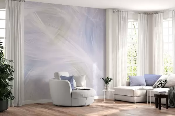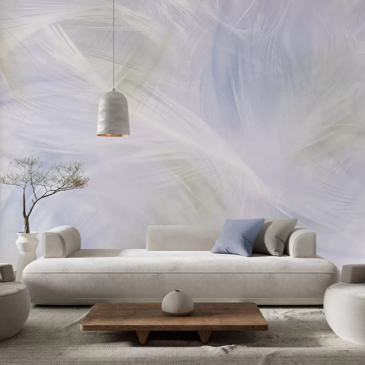 airy feathers in shades of beige and blue - Wall mural (No. w04071v1)