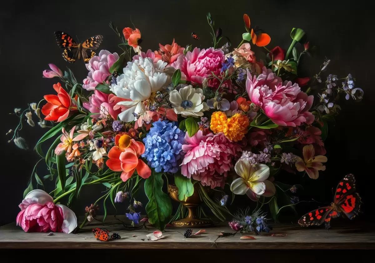 bouquet in the style of Dutch oil painting of the XVII century with a luxurious floral composition. - Wall mural (No. w04078)