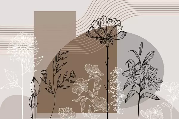 Boho floral outline - Wall mural (No. w04081)