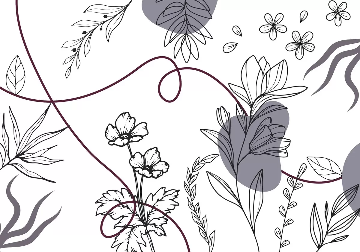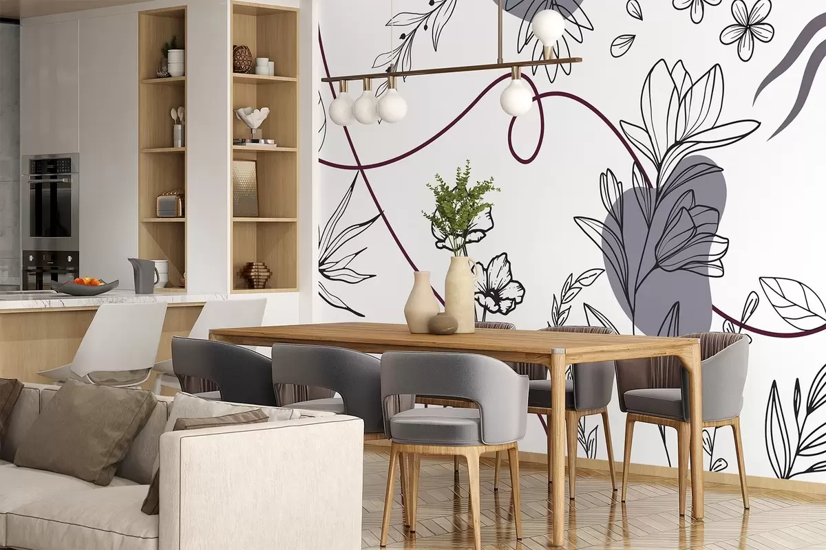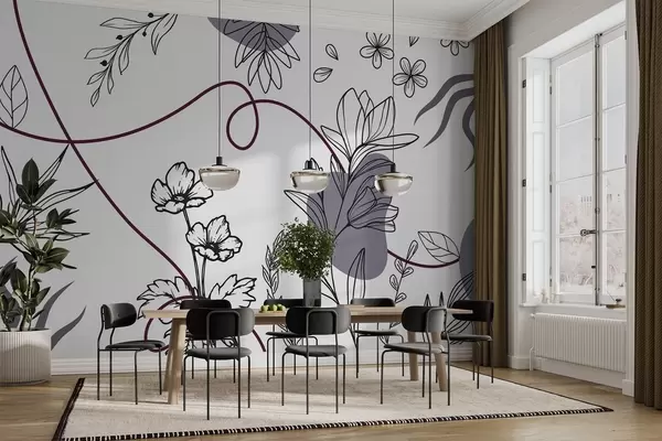 Boho floral outline - Wall mural (No. w04082v1)