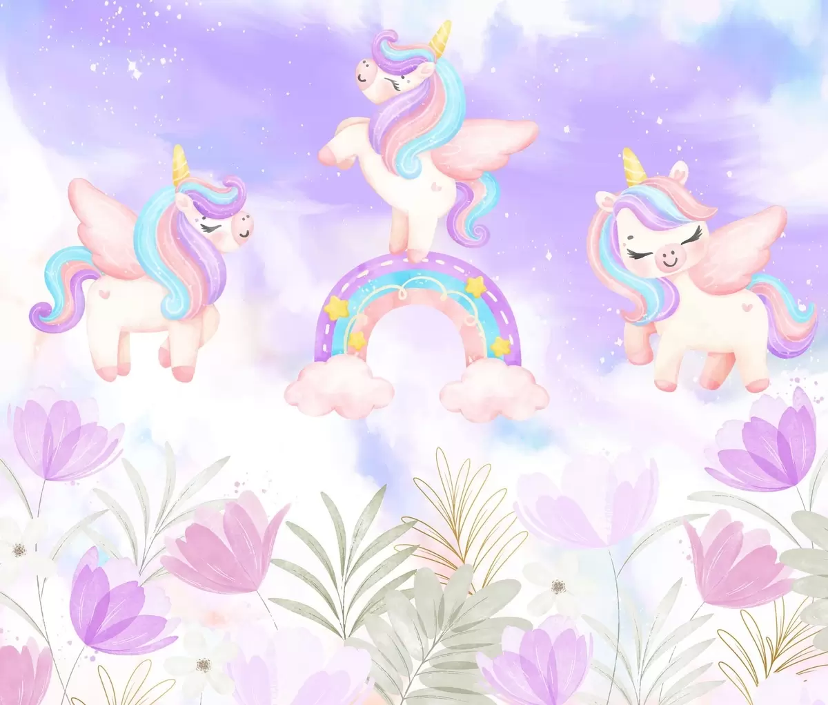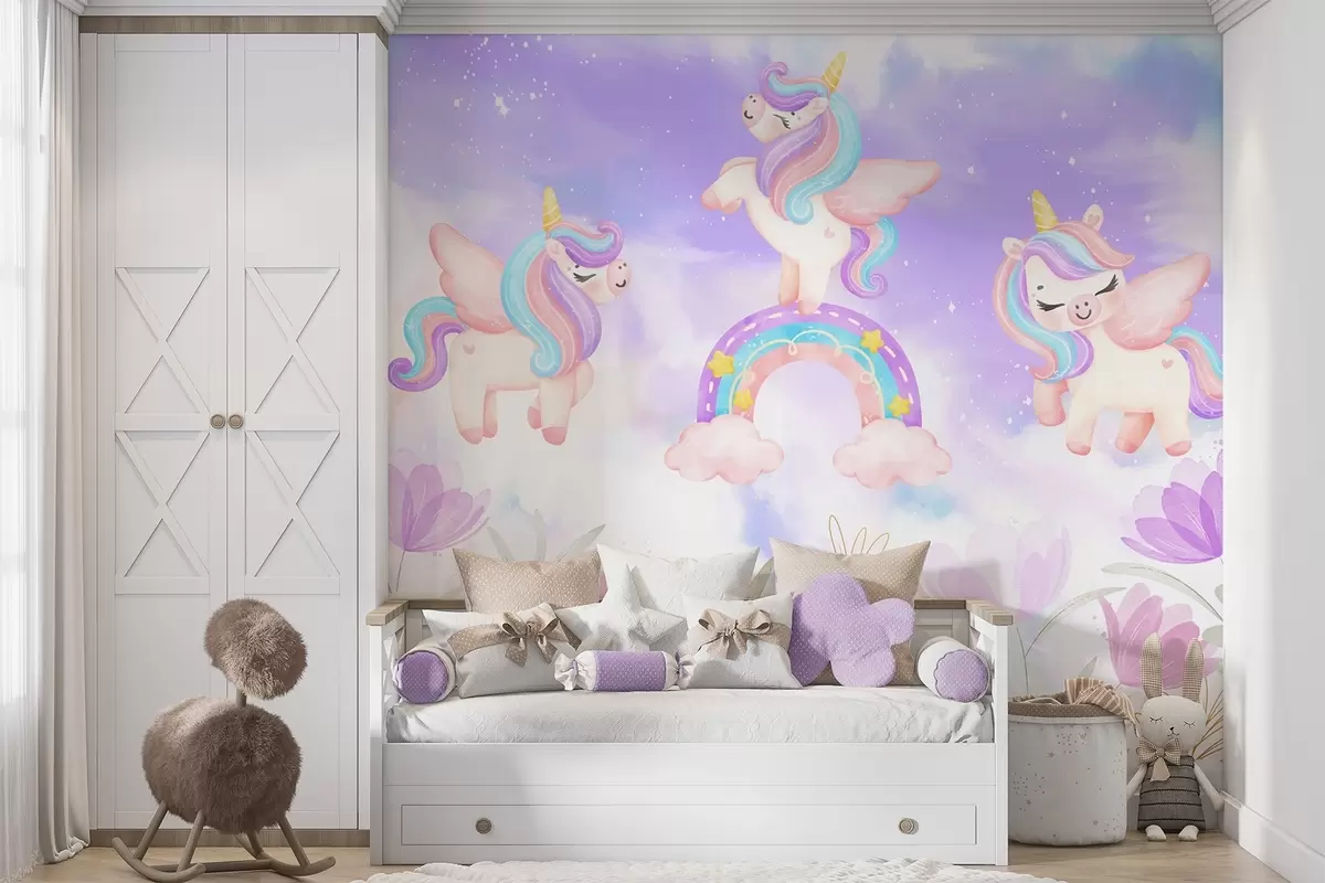 Unicorns on a rainbow - Wall mural (No. w04084)