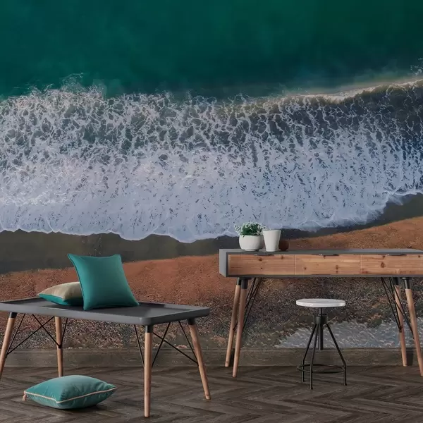 Ocean waves, beach, air photography, realism, summer - Wall mural (No. w04095)