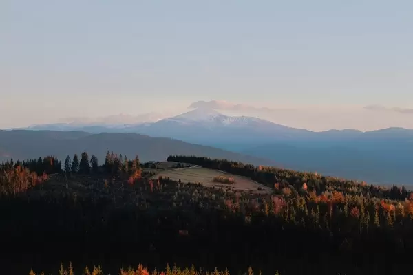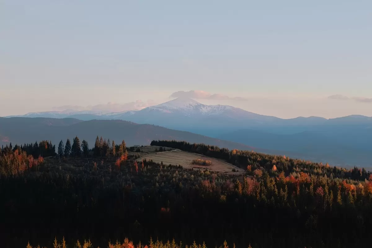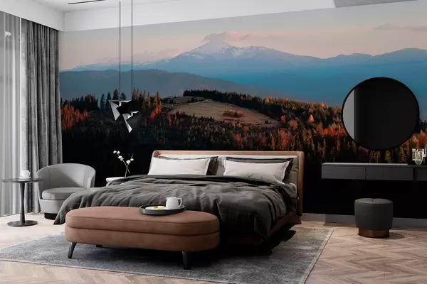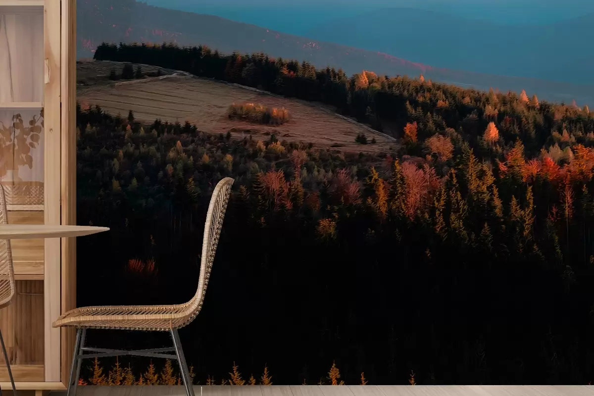 Carpathian mountains, oil style texture, autumn forest, sunset sky - Wall mural (No. w04098)