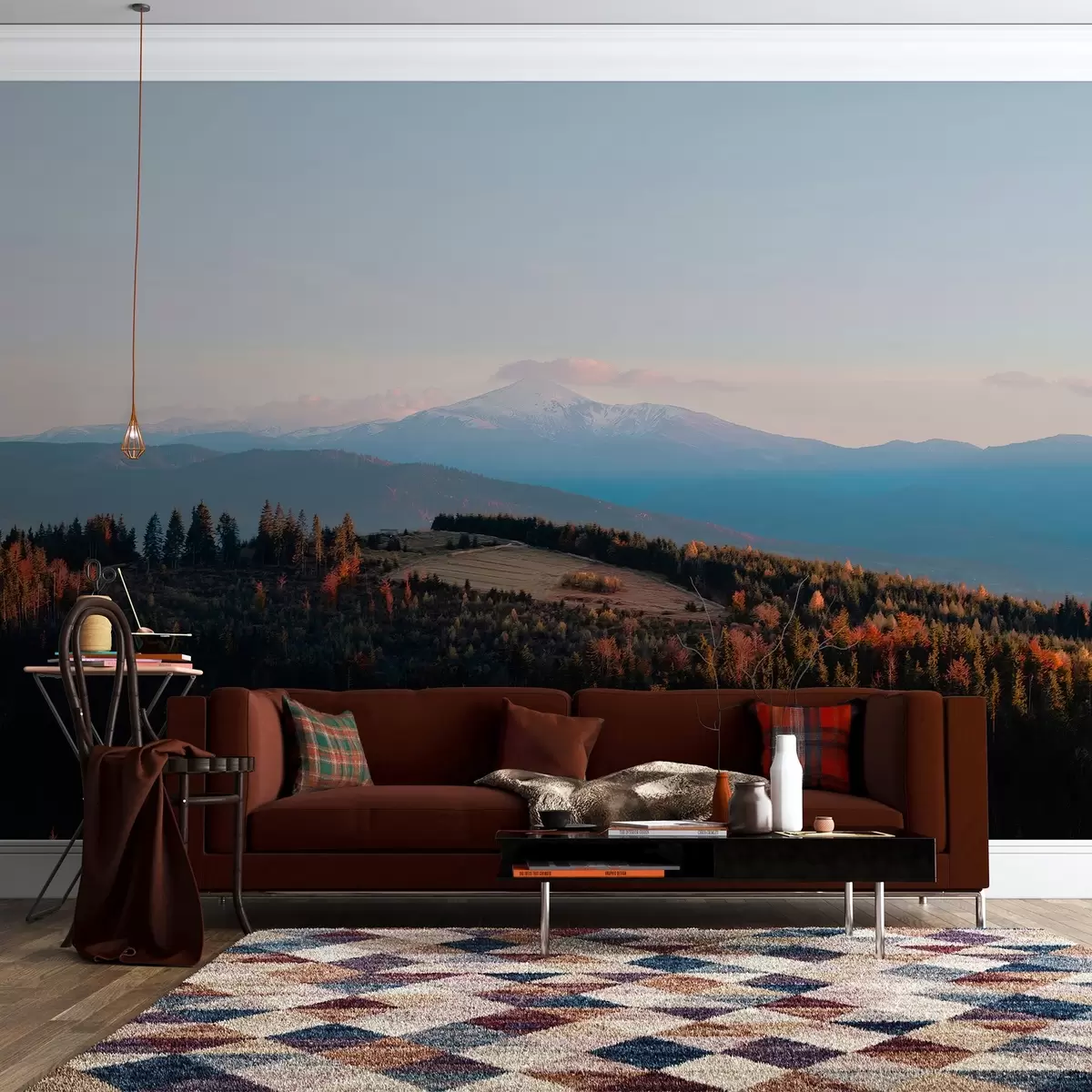 Carpathian mountains, oil style texture, autumn forest, sunset sky - Wall mural (No. w04098)