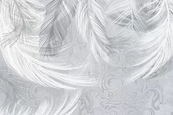 Delicate feathers blue shades - Wall mural (No. w04102v1)