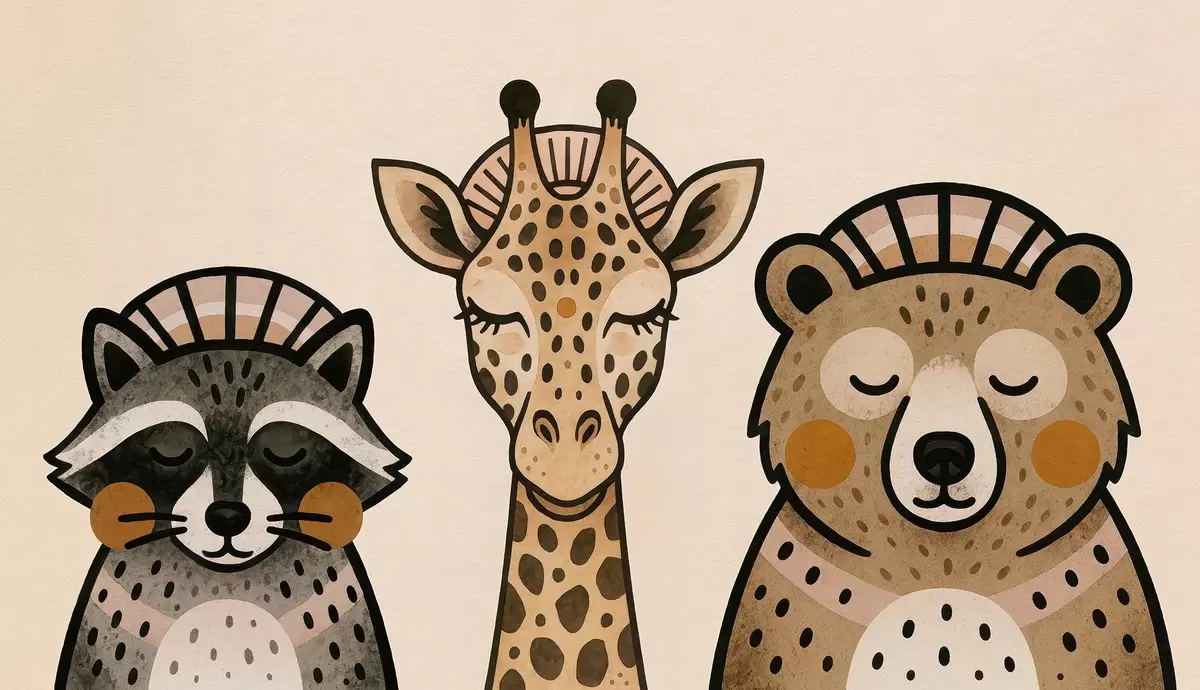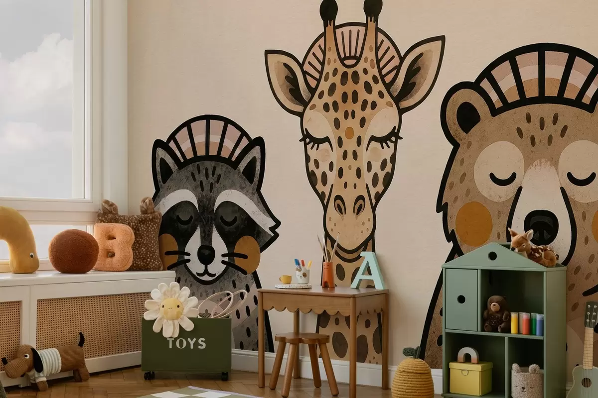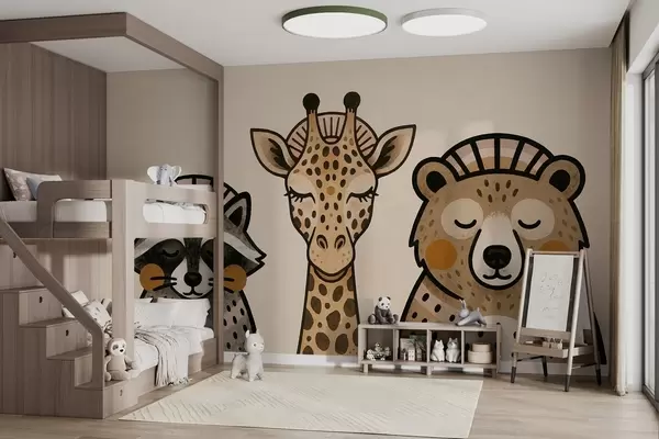 Watercolor-style drawn animals - Wall mural (No. w04111)