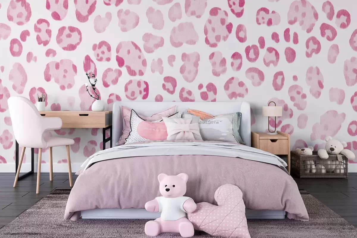Leopard print, wool texture, pink color - Wall mural (No. w04112v2)