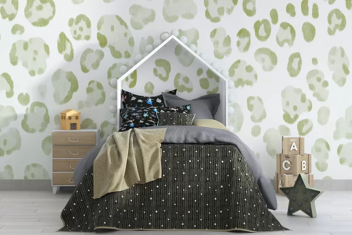 Leopard print, wool texture, green color - Wall mural (No. w04112v3)