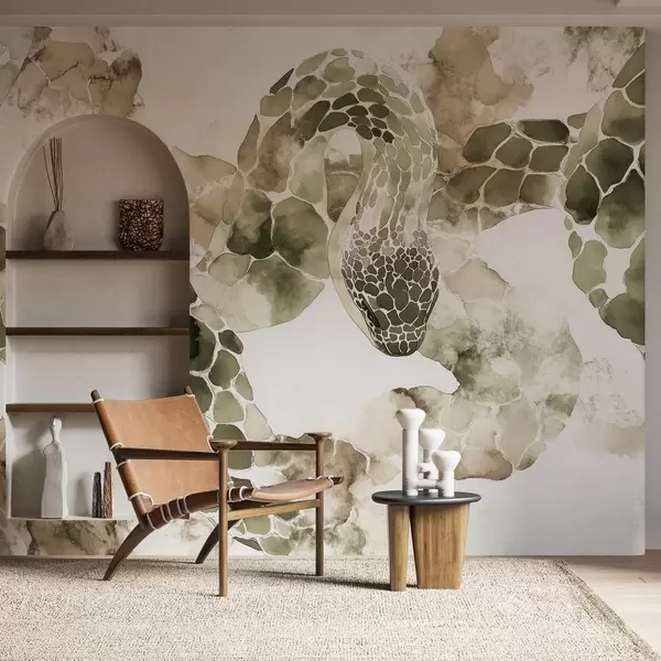 Snake silhouette, watercolor style, olive colors - Wall mural (No. w04113v3)