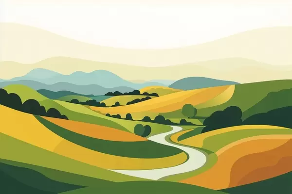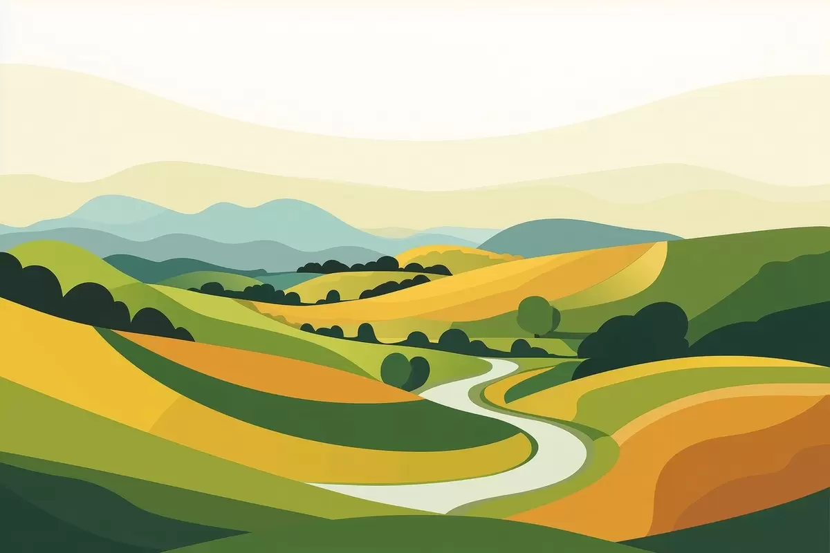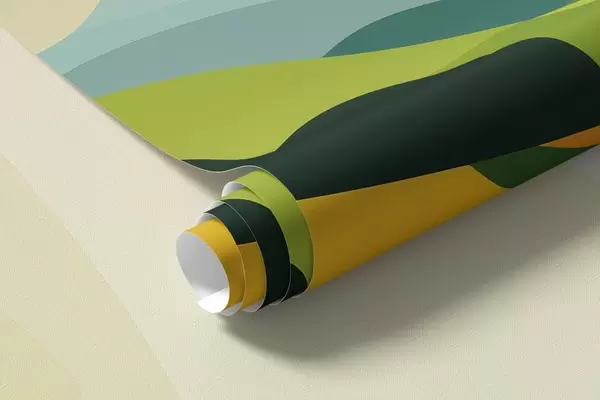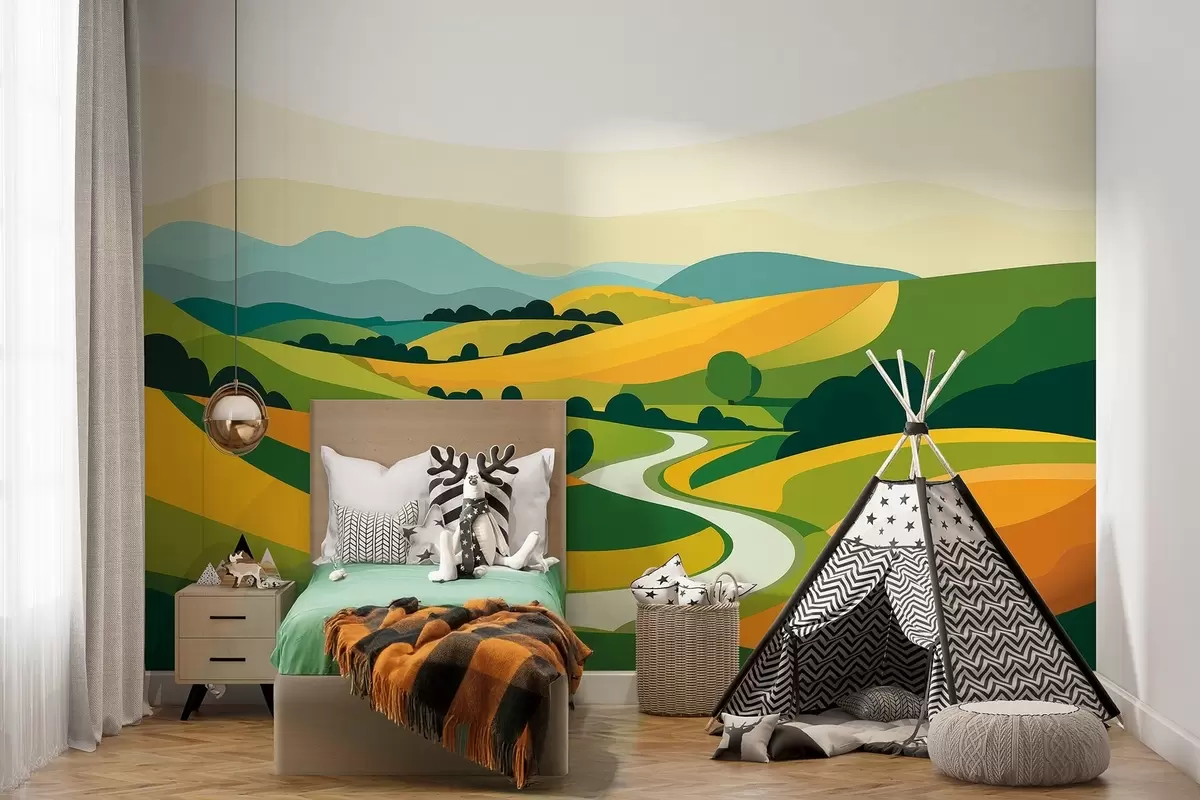 Abstract landscape with hills and trees, vivid colors - Wall mural (No. w04116)