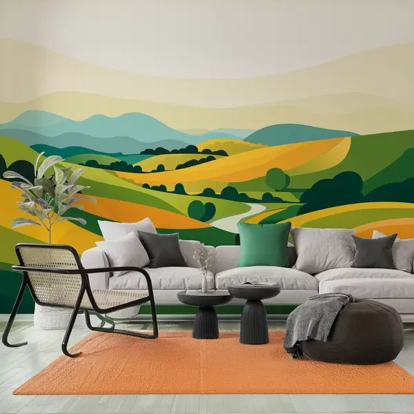 Abstract landscape with hills and trees, vivid colors - Wall mural (No. w04116)