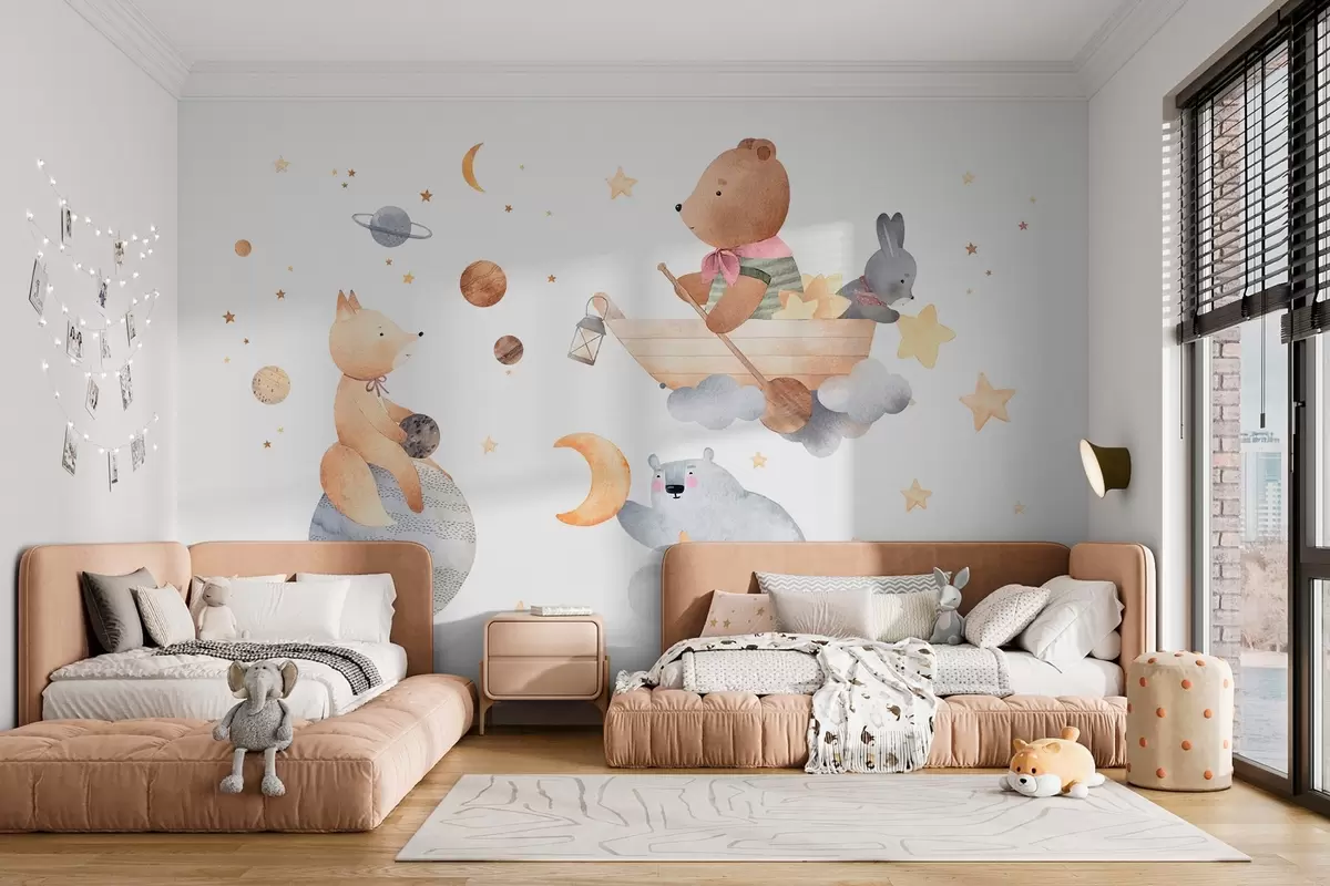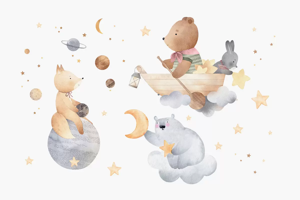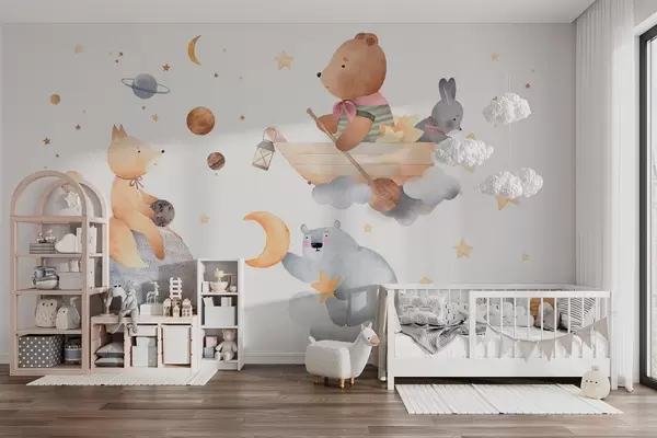 Fairytale animals among clouds and stars - Wall mural (No. w04123)