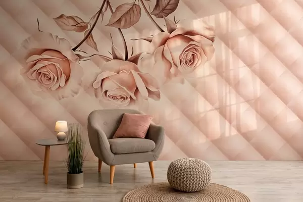 powder roses in retro style - Wall mural (No. w04141)