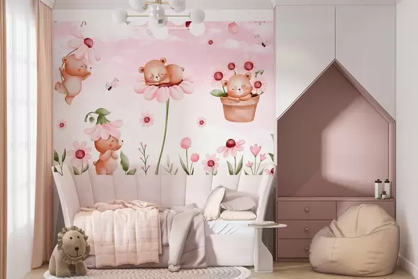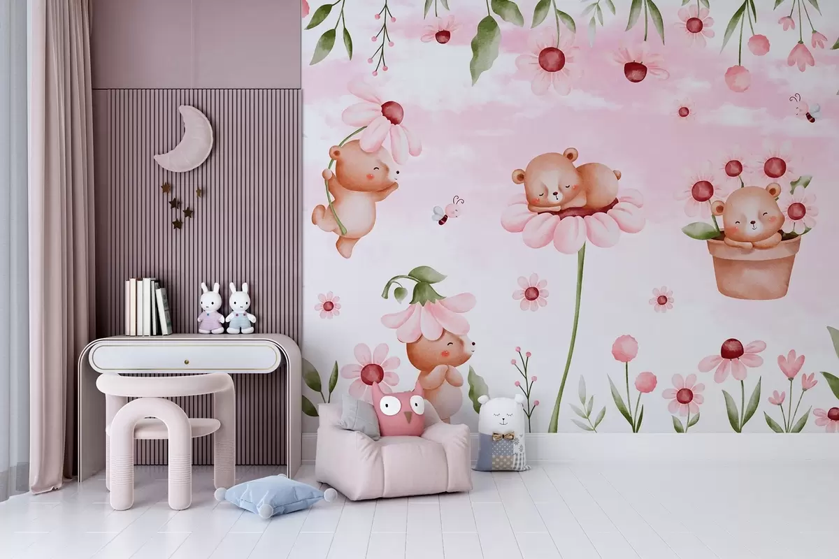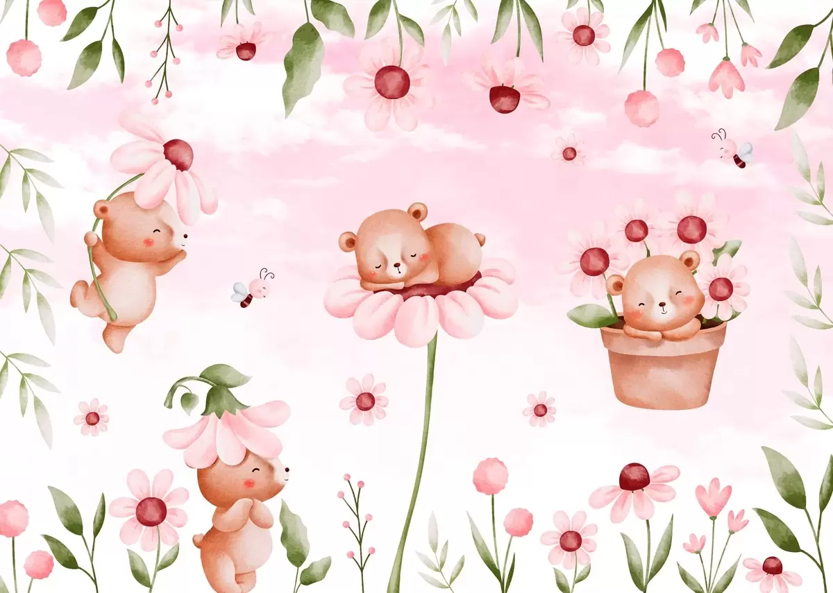 Bears with flowers, fairy-tale animals - Wall mural (No. w04143)