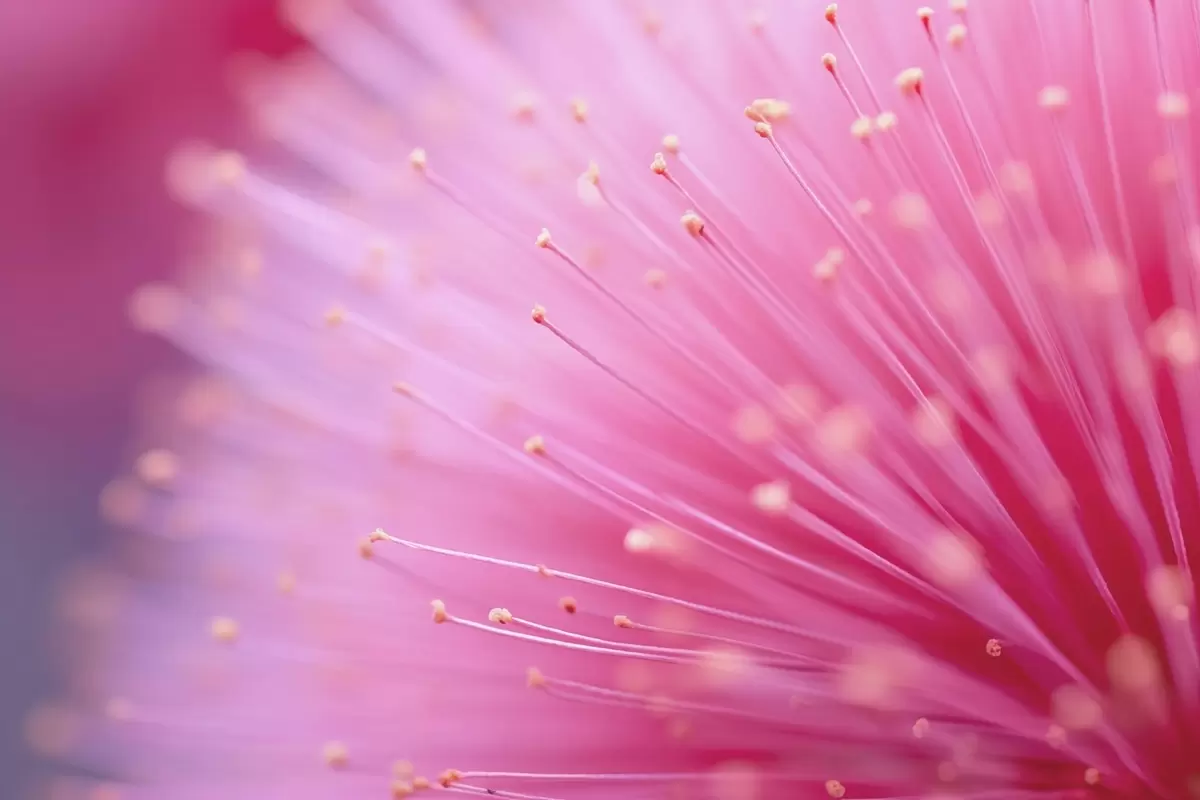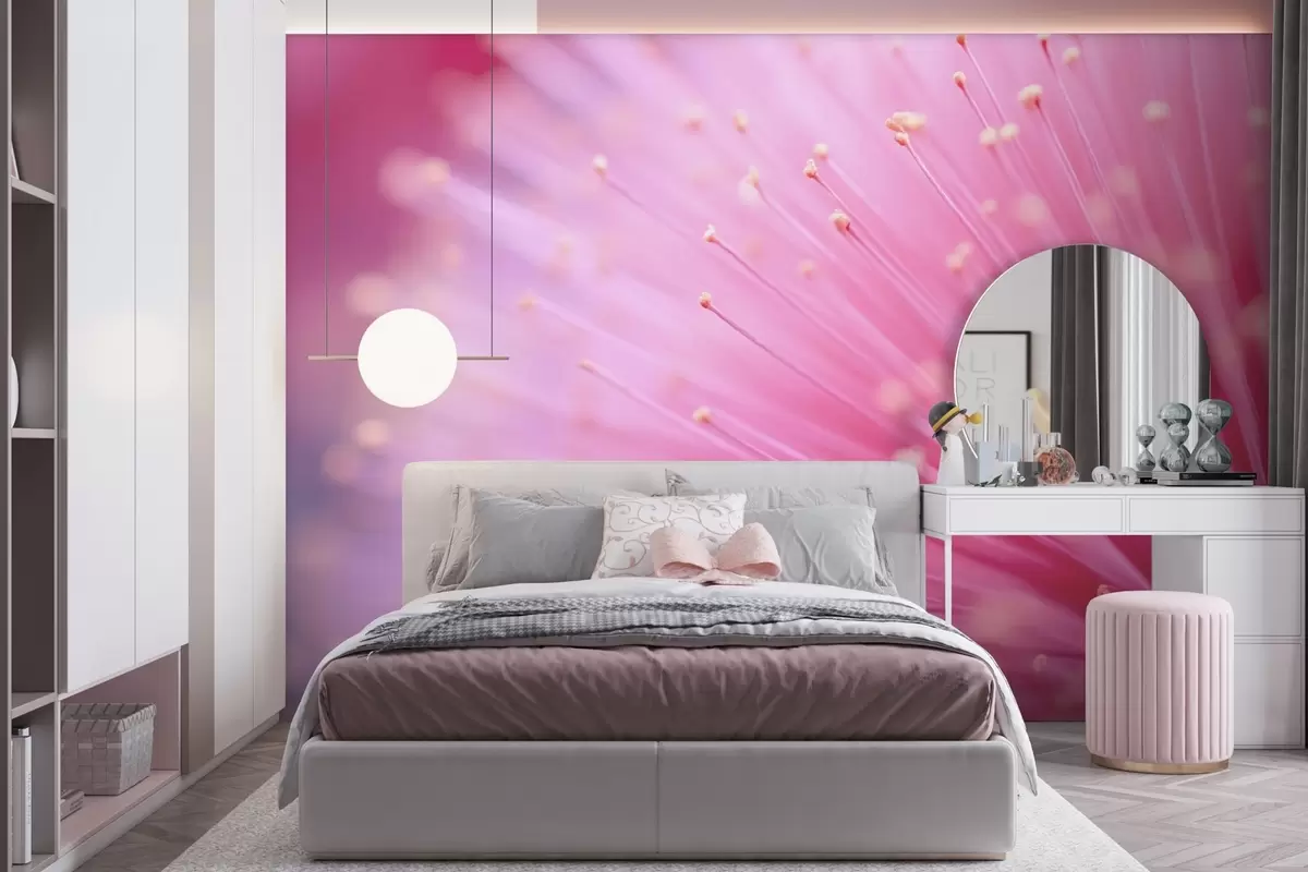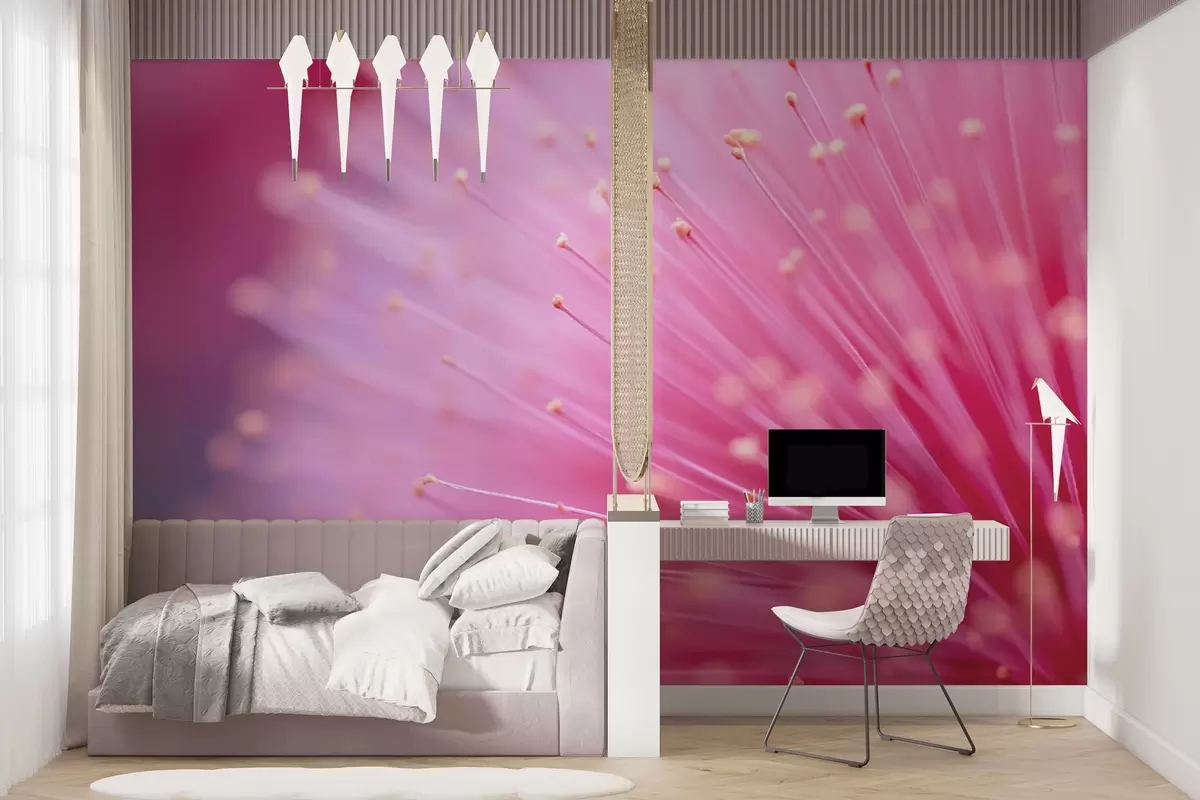 Pink flower stamens in macro, delicate abstraction - Wall mural (No. w04154)