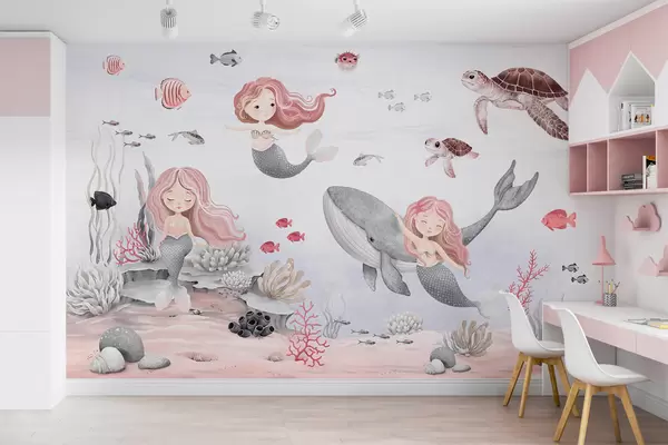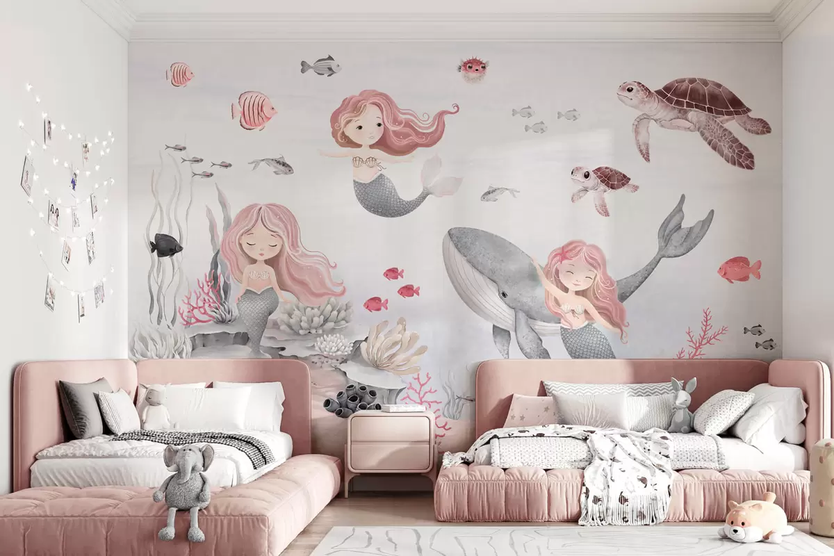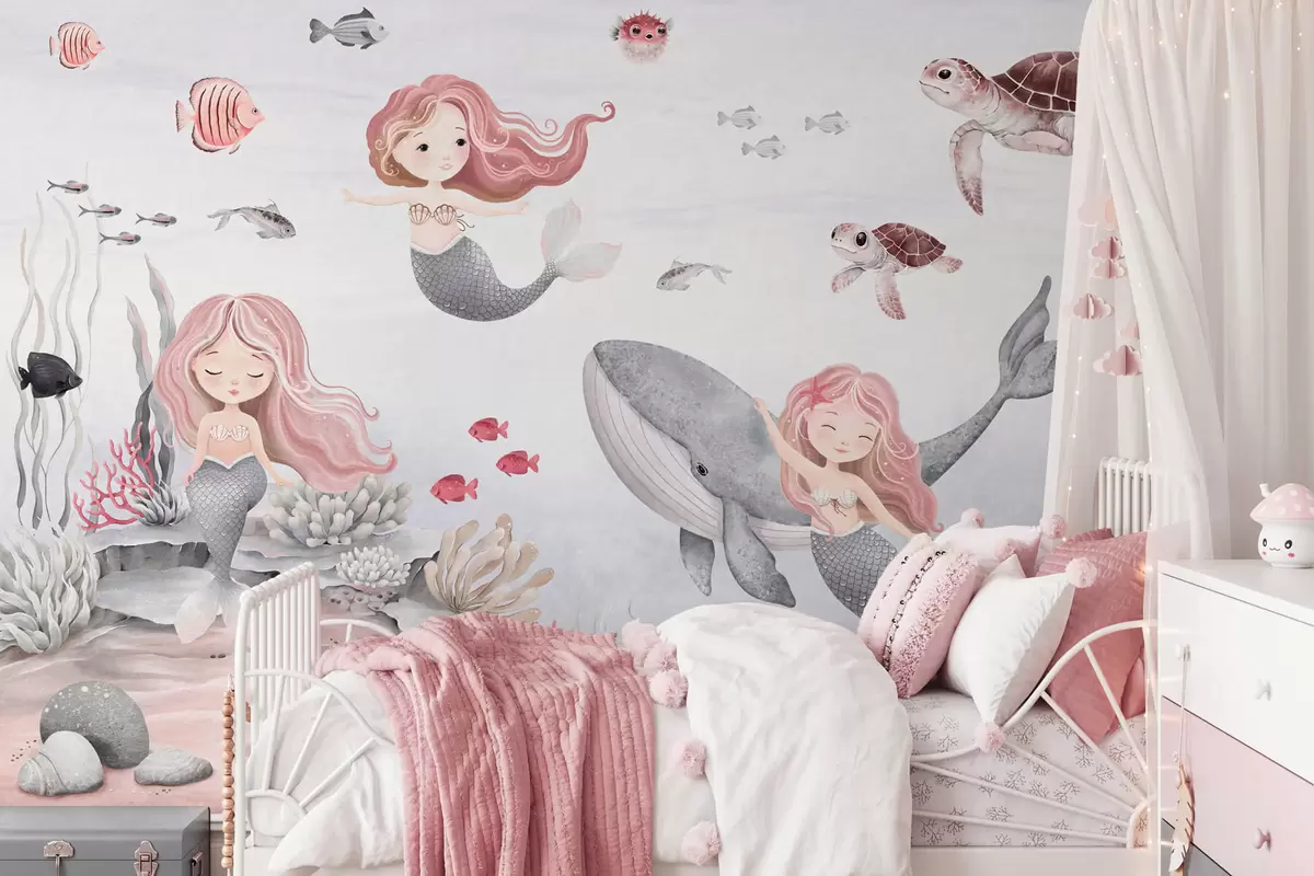 Underwater world with mermaids and fishes - Wall mural (No. w04166v1)