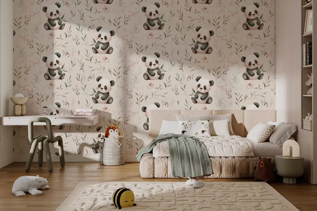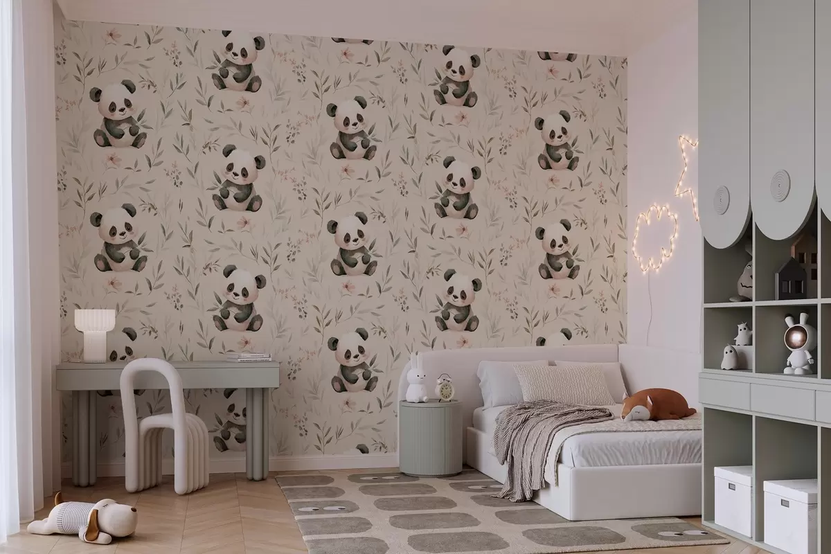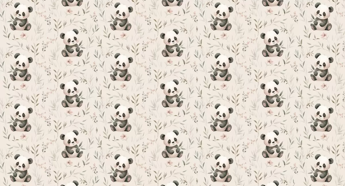 cute baby-style pandas among the plants - Wall mural (No. w04170)