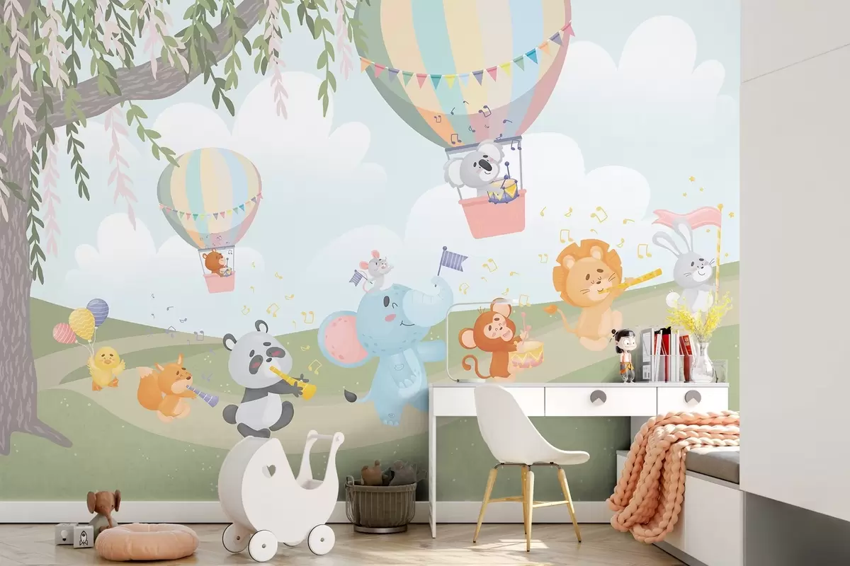 Landscape with animals playing musical instruments - Wall mural (No. w04200)