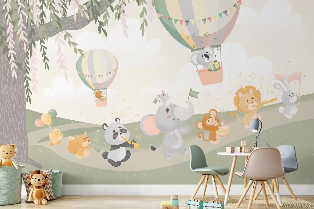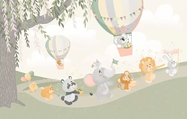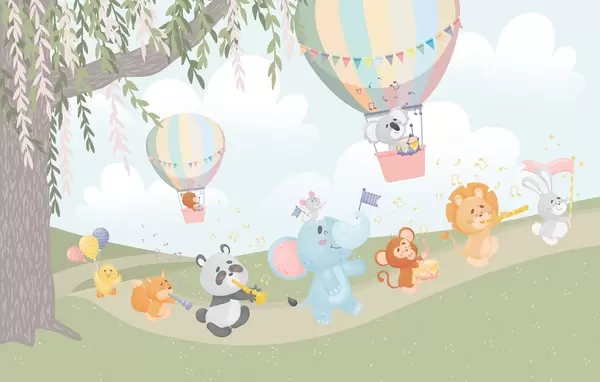 Landscape with animals playing musical instruments - Wall mural (No. w04200v1)