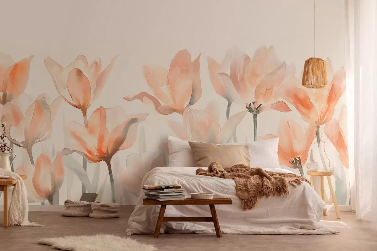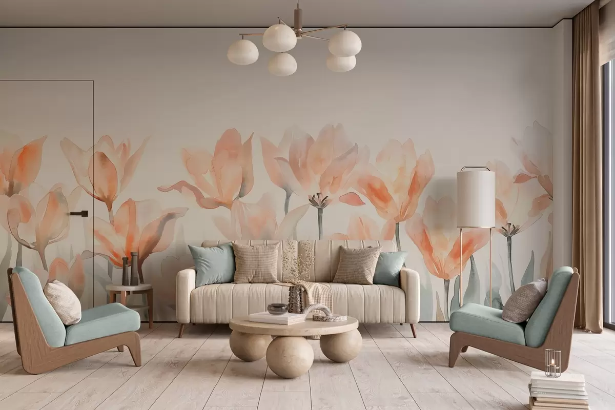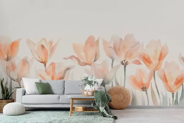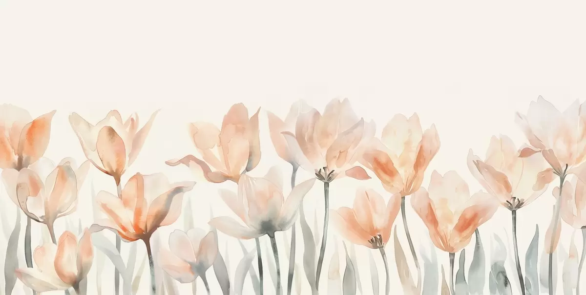 fresh watercolor tulips growing from below - Wall mural (No. w04204)