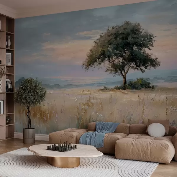 tree in the middle of a field in the style of oil painting - Wall mural (No. w04206)