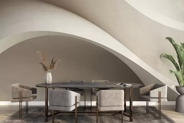 abstraction, waves, soft curves, beige, smooth, lines, modern - Wall mural (No. w04217v1)