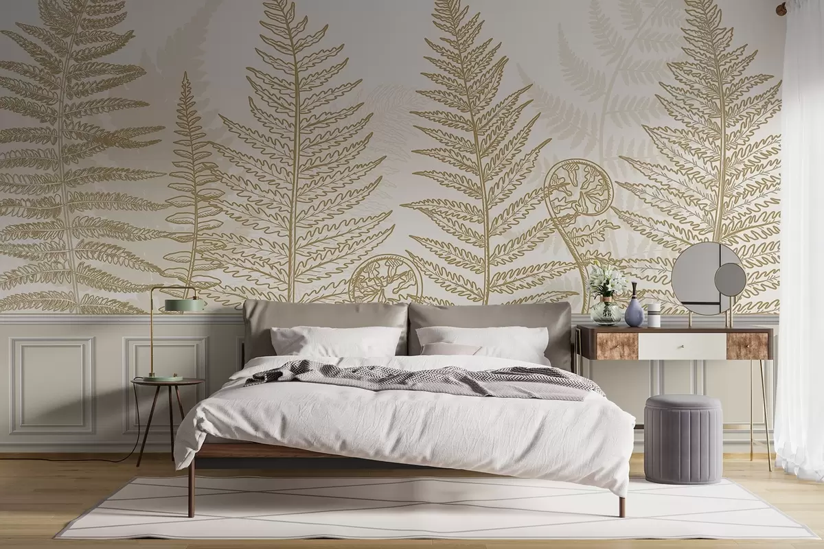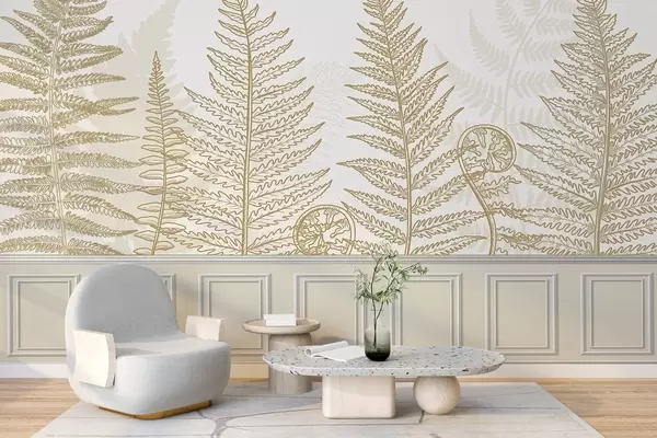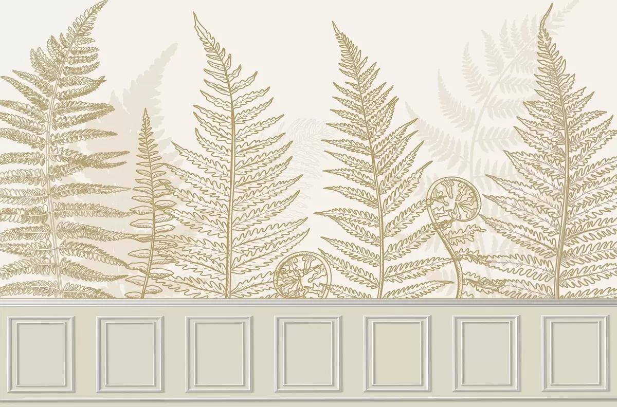 leaves, plants, fern, light, botanical, graphic - Wall mural (No. w04239)