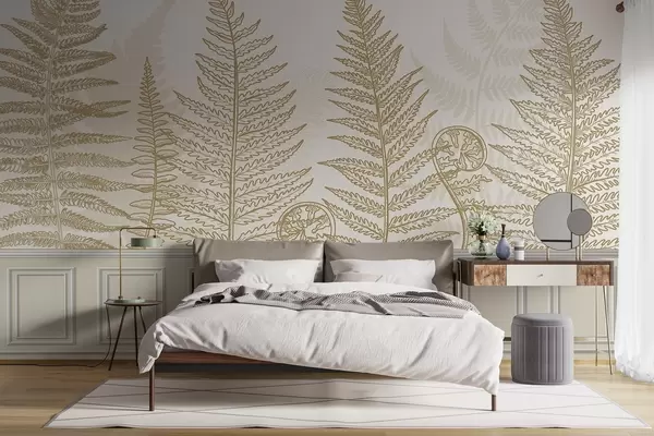 leaves, plants, fern, light, botanical, graphic - Wall mural (No. w04239)