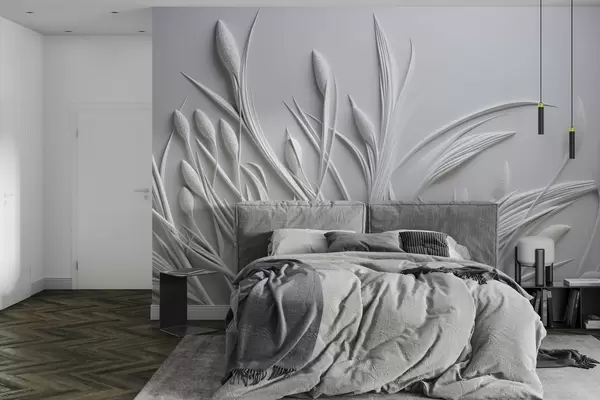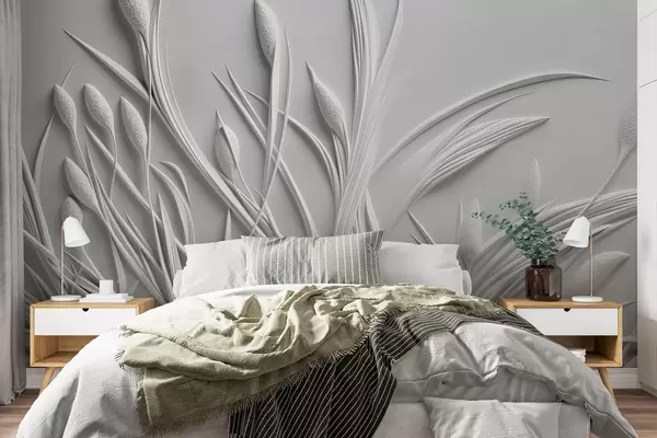 Bas-relief with delicate leaves and pampas - Wall mural (No. w04247)