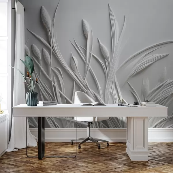 Bas-relief with delicate leaves and pampas - Wall mural (No. w04247)