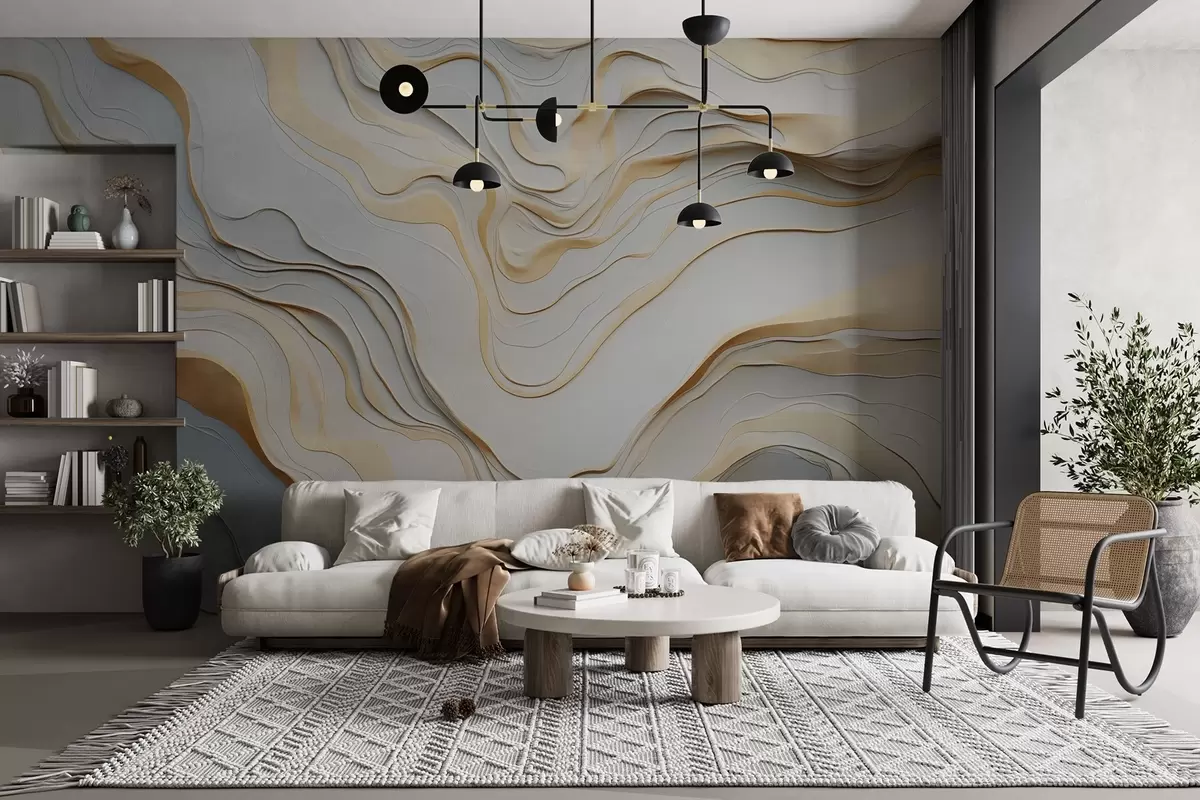 layers, waves, abstraction, beige, grey, smoothness, modern - Wall mural (No. w04255)