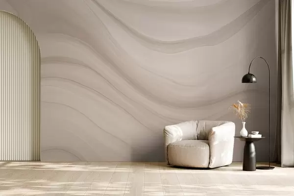 Light beige abstraction with soft waves - Wall mural (No. w04257)