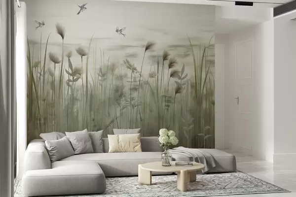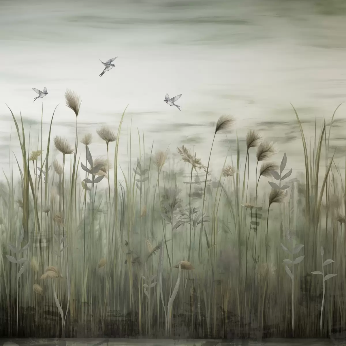 Light version of grass landscape with swallows - Wall mural (No. w04258)